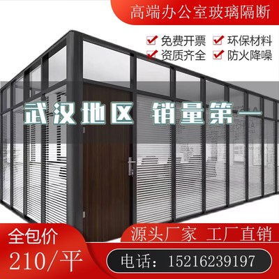 武汉办公室玻璃隔断墙铝合金百叶双层钢化透明磨砂隔间办公室隔断