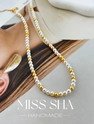 糖果Baby 适合夏天戴的人造仿小米珍珠项链糖果色混彩锁骨链