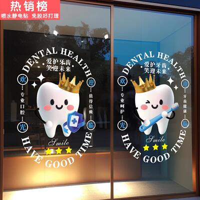 牙科诊所玻璃门贴纸店铺橱窗装饰贴画口腔医院定制时间卡通静电贴