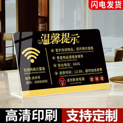 酒店客房温馨提示牌入住须知贵重物品提示牌黄赌毒警示牌宾馆民宿房间免费wifi密码提示牌桌牌立牌床头贴纸ZH