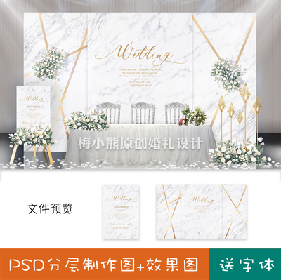 白色大理石清新婚礼现场布置策划婚庆背景喷绘设计效果图psd素材