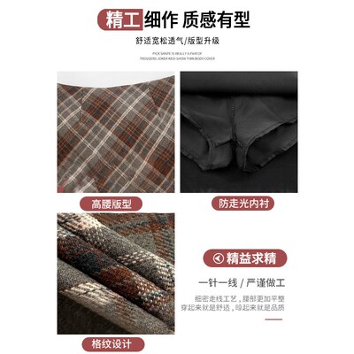 复古红色毛呢格子半身裙女2025秋冬厚实高腰显瘦a字包臀格纹短裙