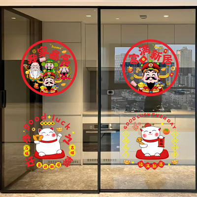 乔迁之喜装饰窗花玻璃静电窗贴福满新居门贴新新年装饰玻璃财神贴