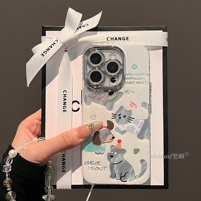 适用苹果16ProMax手机壳新款iPhone17pro趣味卡通镂空小动物15闪粉镜头全包14小众创意13女款12带挂绳保护套