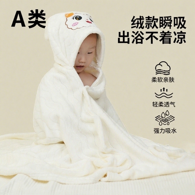 秋冬a类儿童浴袍男女童浴衣宝宝浴巾婴儿卡通珊瑚绒吸水连帽加厚