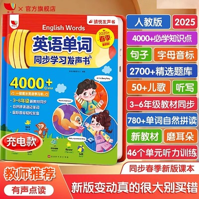 25年新版 英语单词同步点读发声书 三年级英语单词记背神器3-6年级小学生有声书新教材 2025人教同步练习音标和自然拼读记背学习机