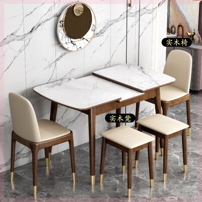 餐桌家用小户型伸缩折叠餐桌椅组合现代简约轻奢岩板餐桌家用饭桌