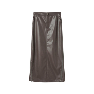 U/TI军绿色光泽感PU皮长裙女百搭简约率性半身裙尤缇2024秋季新款