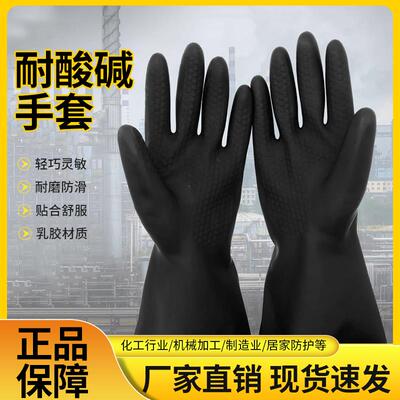 广州双一牌黑色工业乳胶手套耐酸碱化工手套