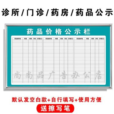 亚克力药品价格公示栏诊所药房门诊药价空白填写款式展示框标识牌