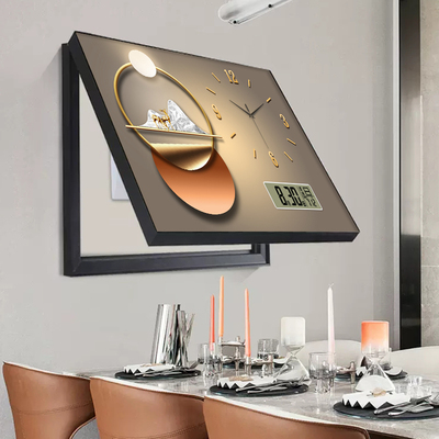 电表箱装饰画带钟表现代简约配电箱遮挡免打孔新款轻奢高级感挂画
