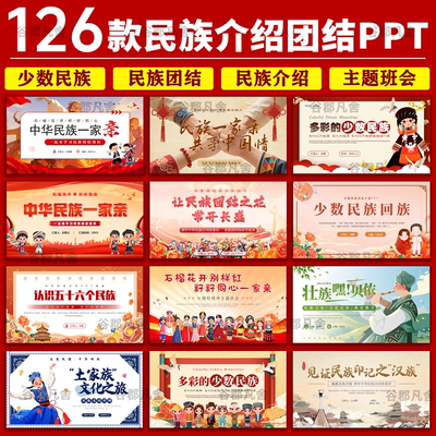 少数民族介绍56个民族大团结一家亲文化习俗风俗民情教育PPT模板