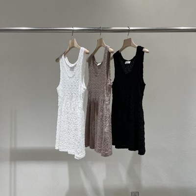 现 25夏季新款韩国东大门STATEMENT 褶皱面料U领纯色背心
