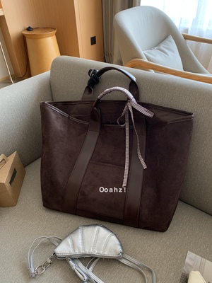 "咖啡过早"自制绒面革托特大包 韩国女ins穿搭复古大容量手提包包