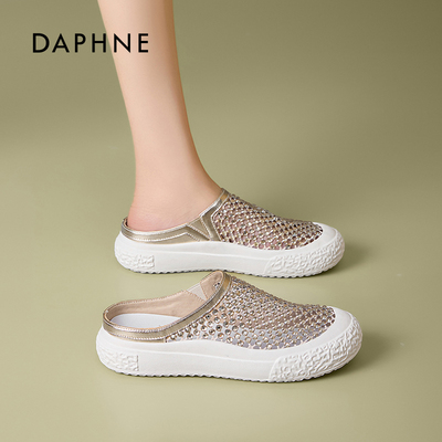 达芙妮外穿厚底半包拖鞋2025夏新款透气水钻百搭休闲半拖鞋洞洞鞋