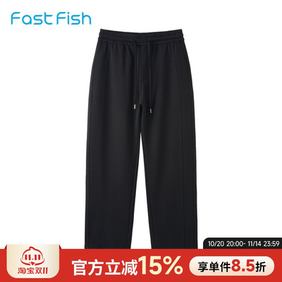 快鱼2025年秋新款男士休闲裤宽松直筒长裤时尚百搭运动针织裤子男