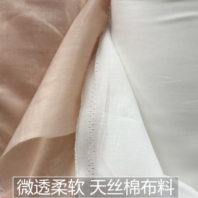 微透柔软亲肤 白色肉桂粉天丝棉布料衬衫连衣裙手工diy设计师面料
