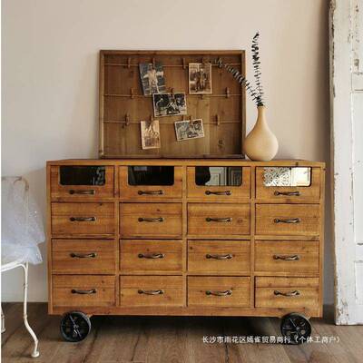 餐复古柜子实木斗柜花展XQM艺店装饰柜边柜做储旧矮柜物柜示柜抽