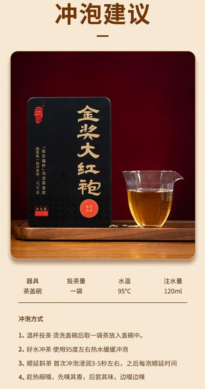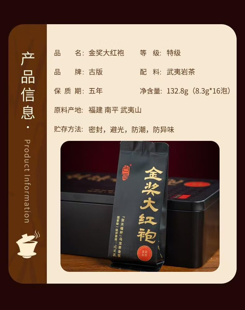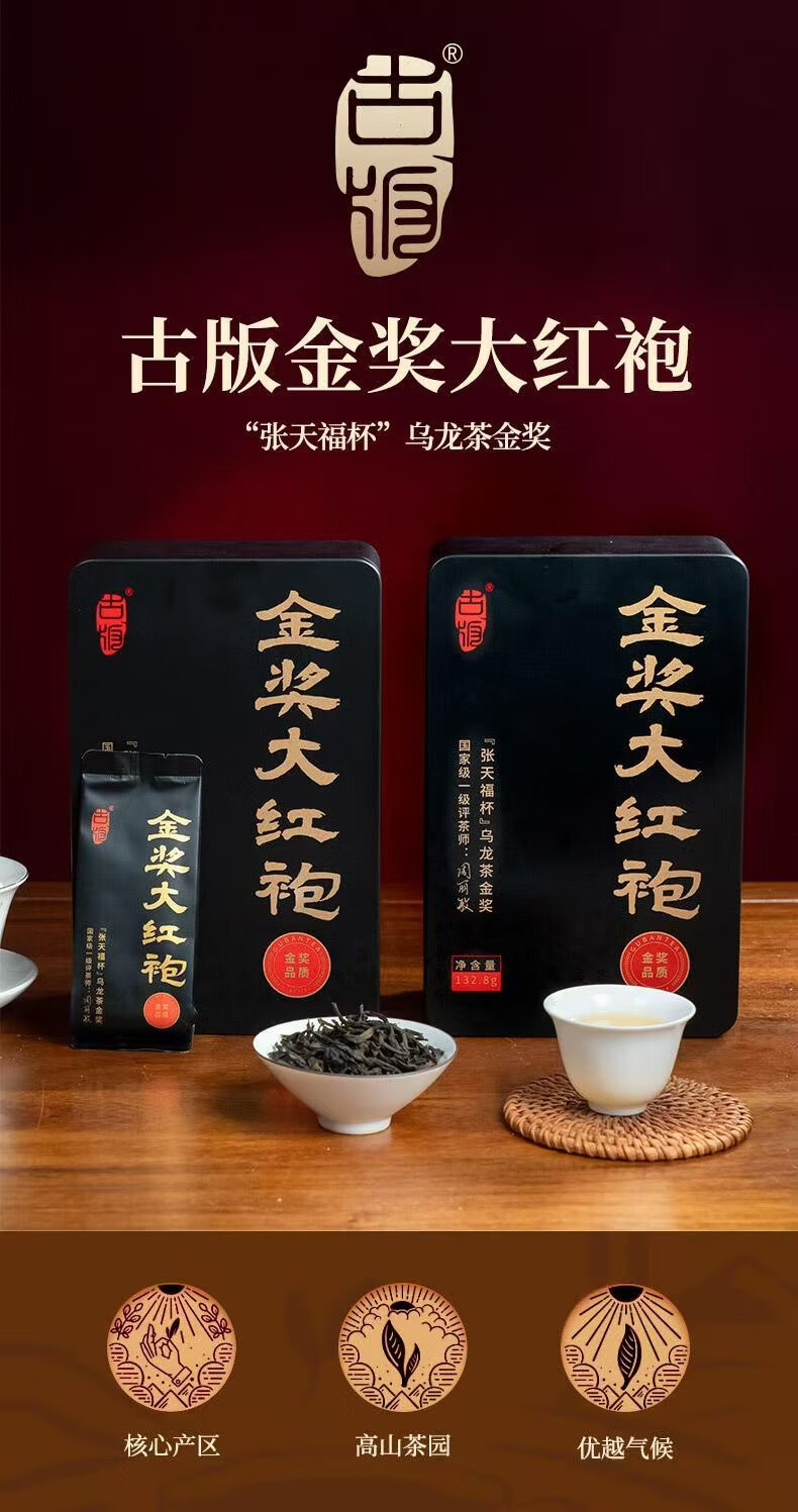 古版武夷茶古版武夷山大红袍岩茶乌龙茶金奖大红袍送礼盒装花香果香正宗好茶 1盒装金奖大红袍【132.8g】