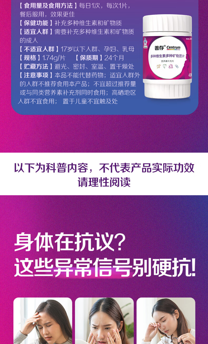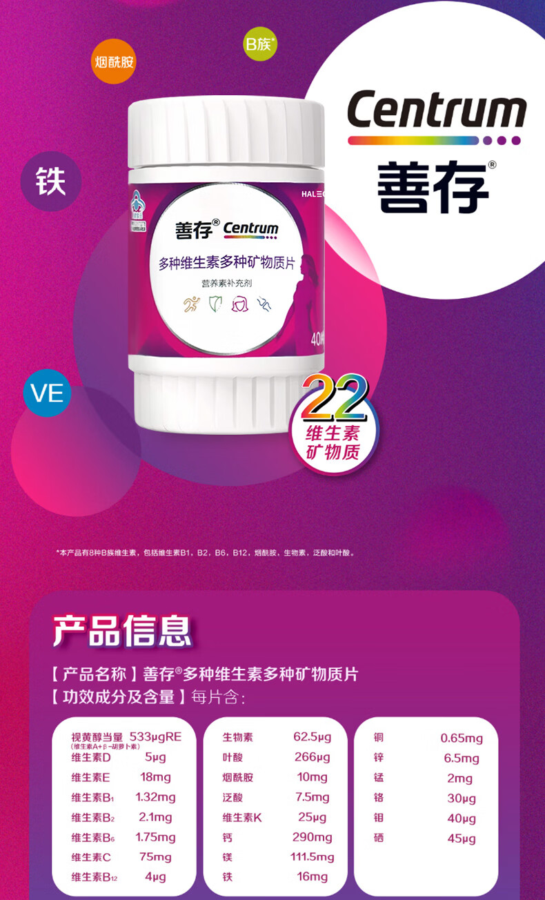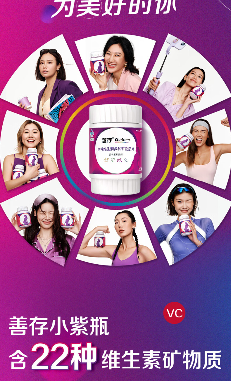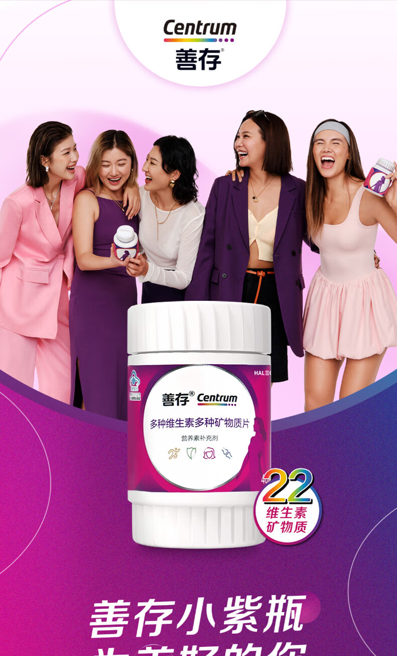 善存 女士复合维生素 B族多种VCED烟酰胺叶酸VK硒B12 小紫瓶 40片*2盒