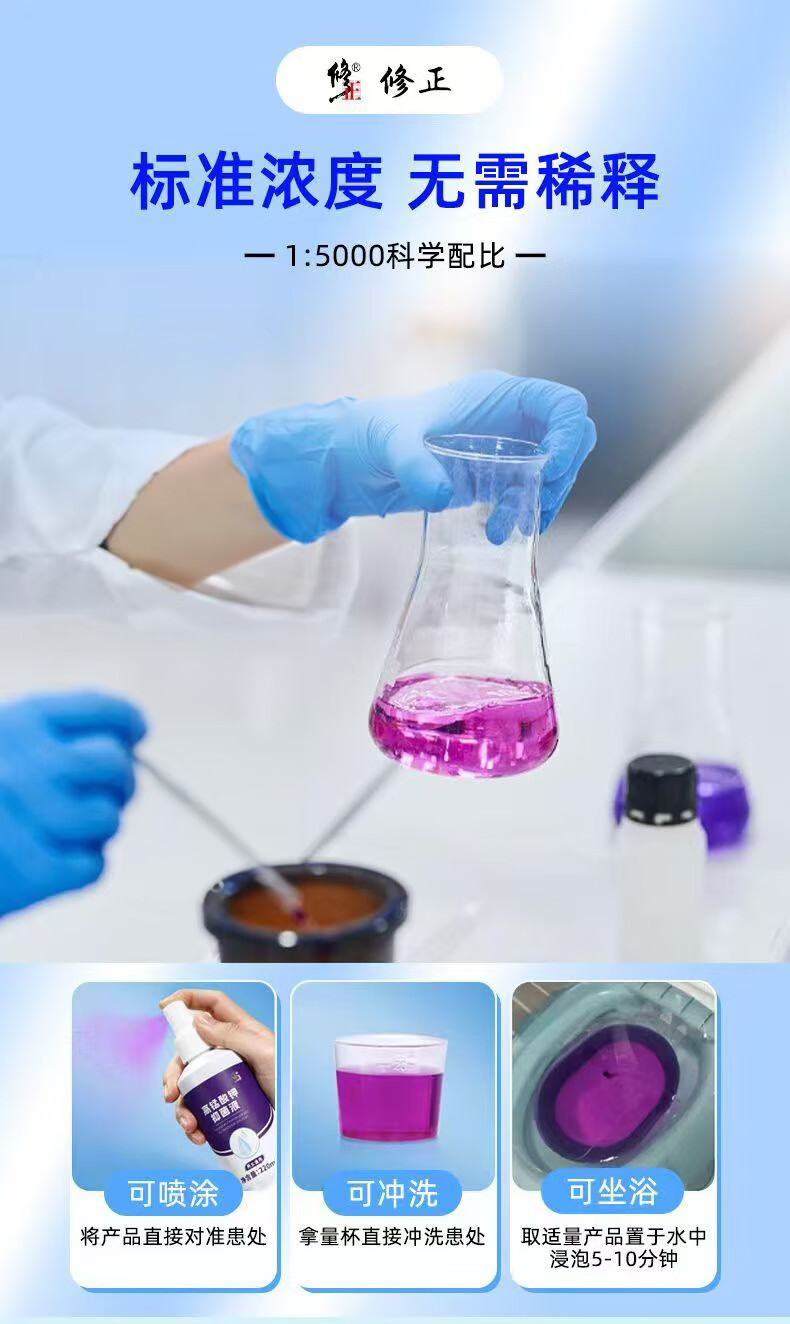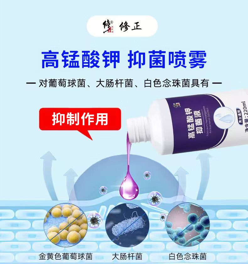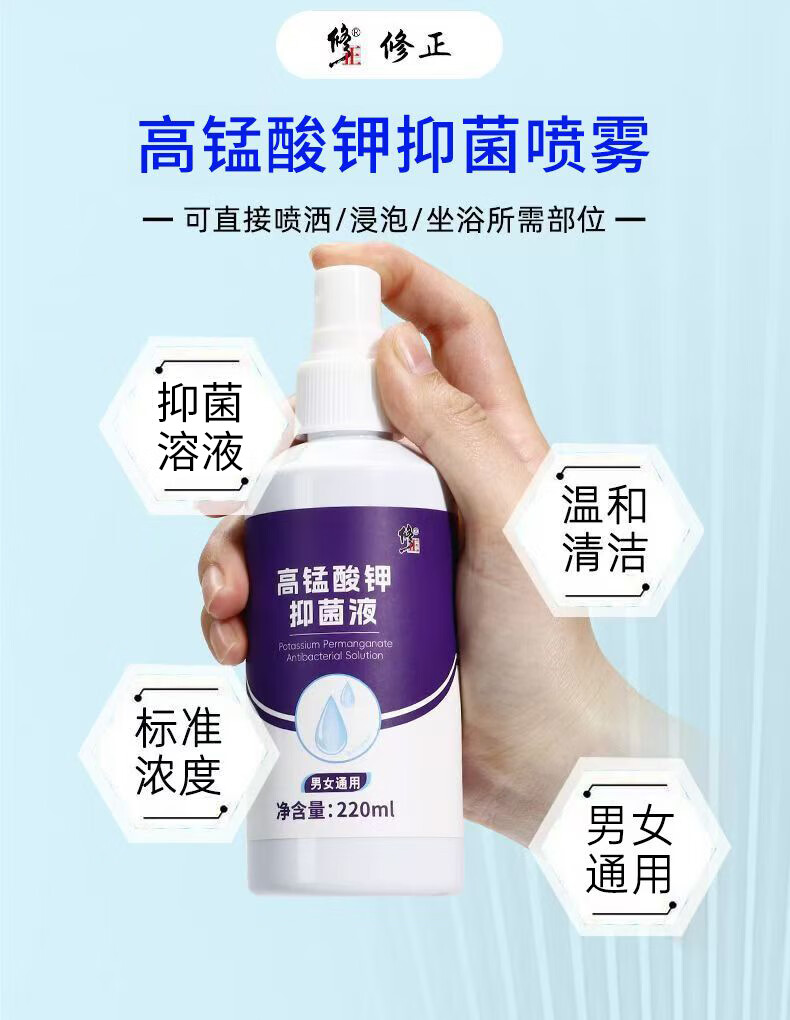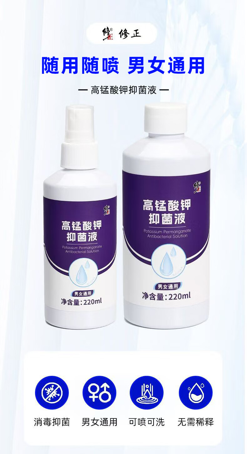修正【私密洗液】高锰酸钾抑菌液喷剂220ml/瓶免稀释男女通用品牌保障 1瓶【高锰酸钾抑菌液】附喷头