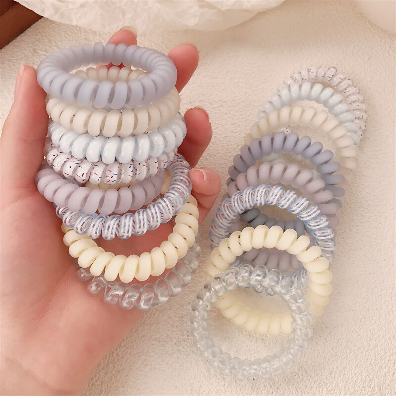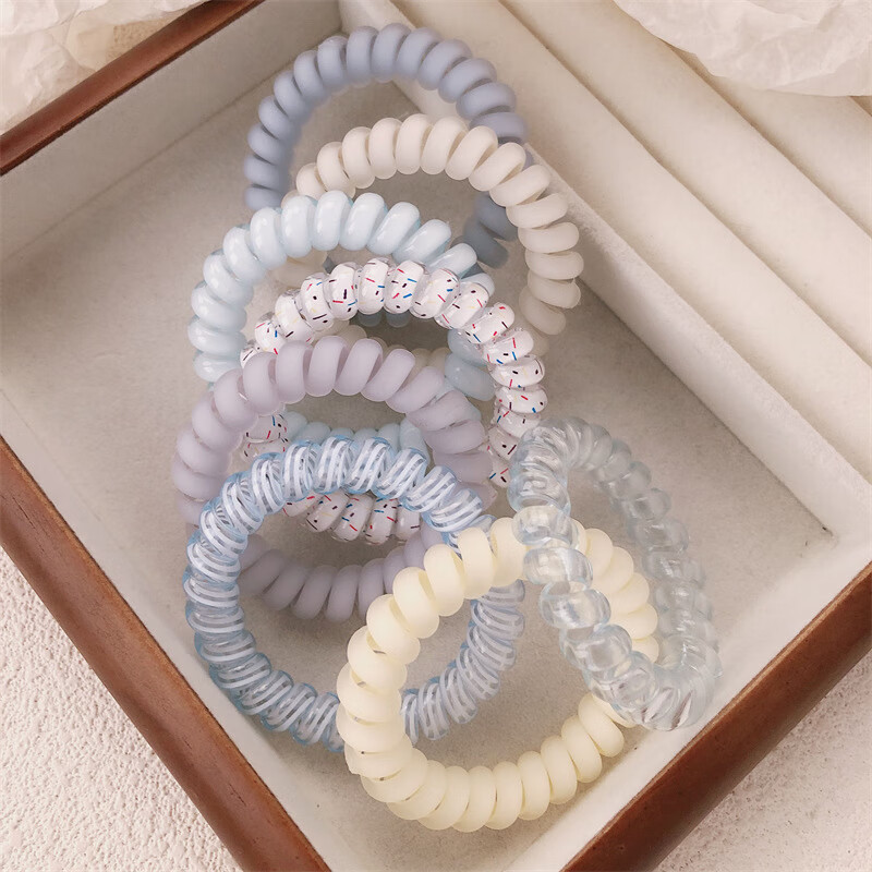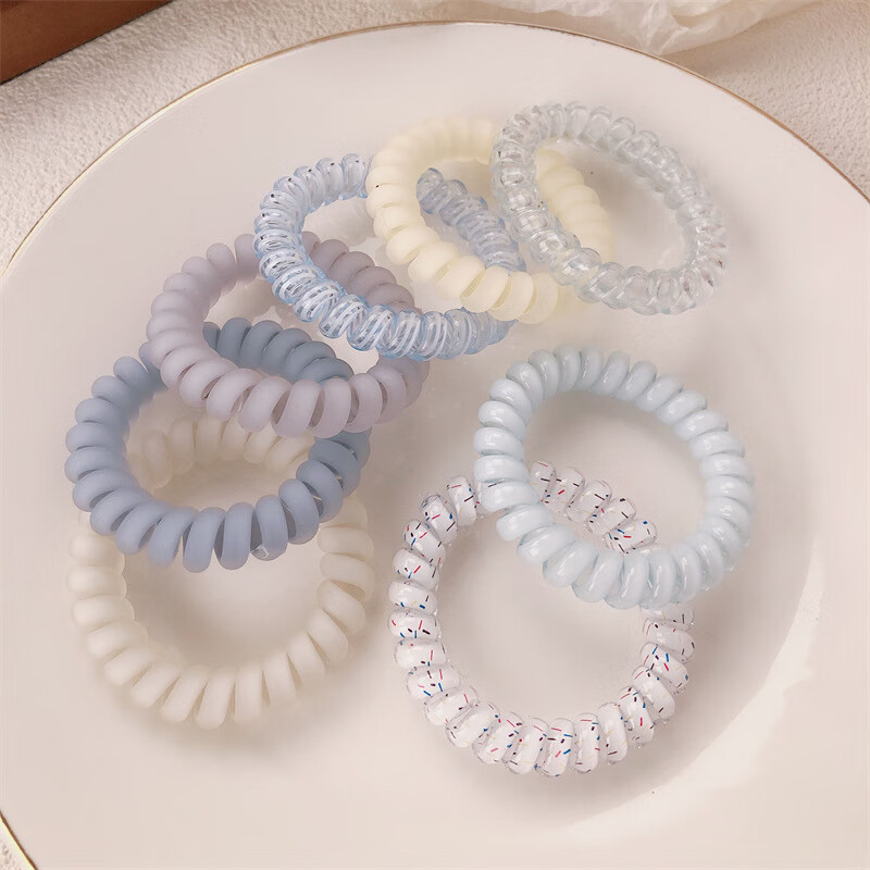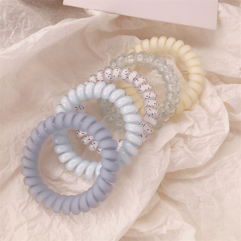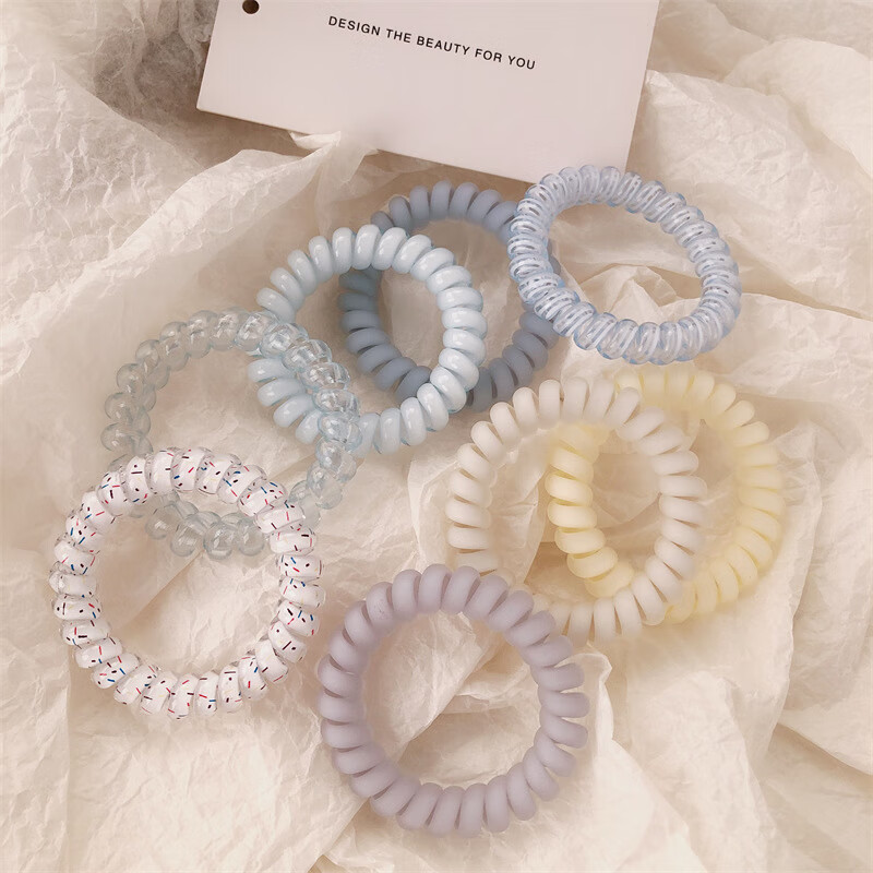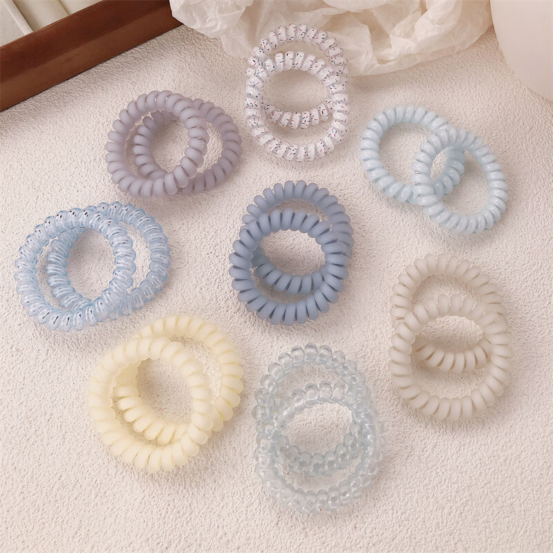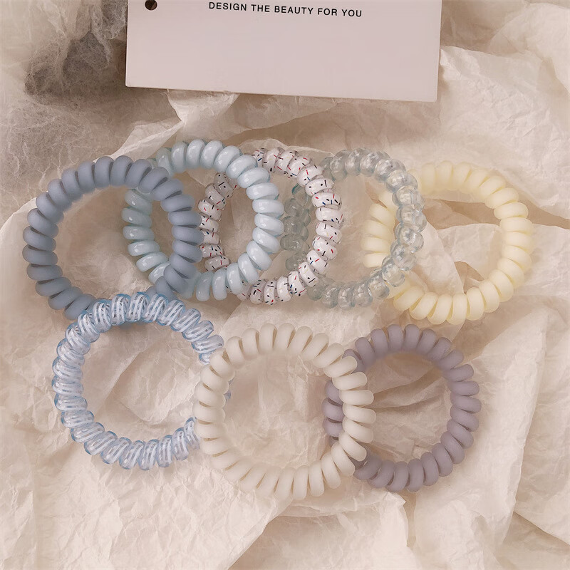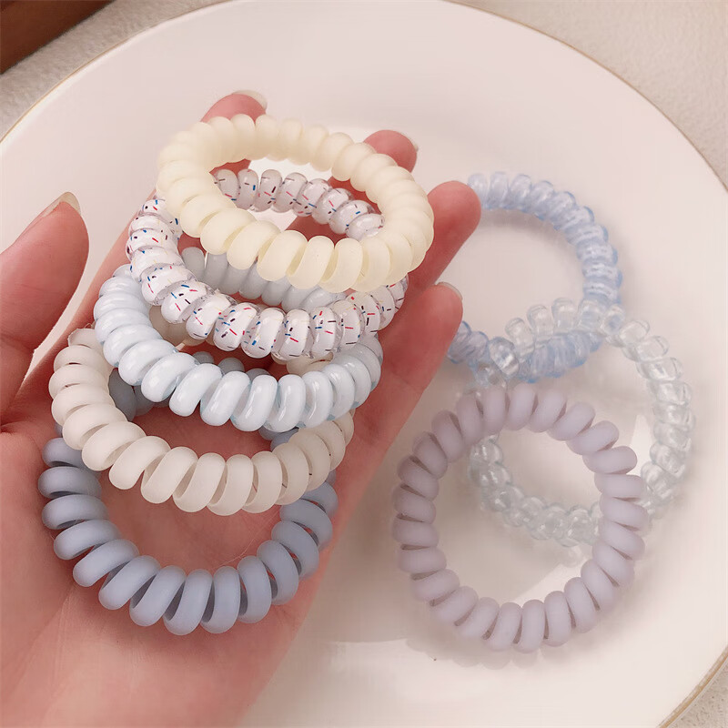 【精选品质】海盐蓝磨砂电话线发圈气质橡皮筋女头绳高弹力耐用无 02 透明浅蓝电话圈