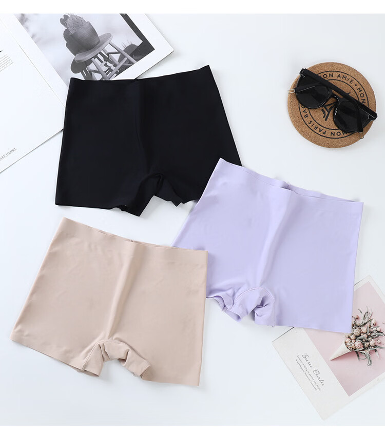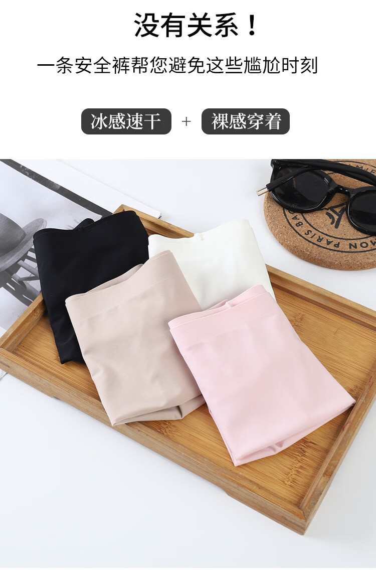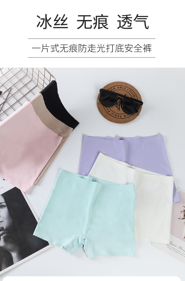 【优选】无痕冰丝一片式中腰纯色棉裆透气大码女士平角内裤女平角 白色 M