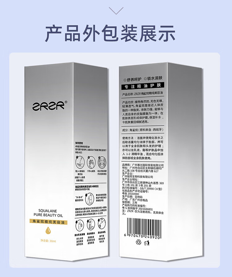 ZRZR角鲨烷精纯美容油植物角鲨烷精华油以油养肤面部保湿滋润 30ml*2瓶+薰衣草10ml 30ml