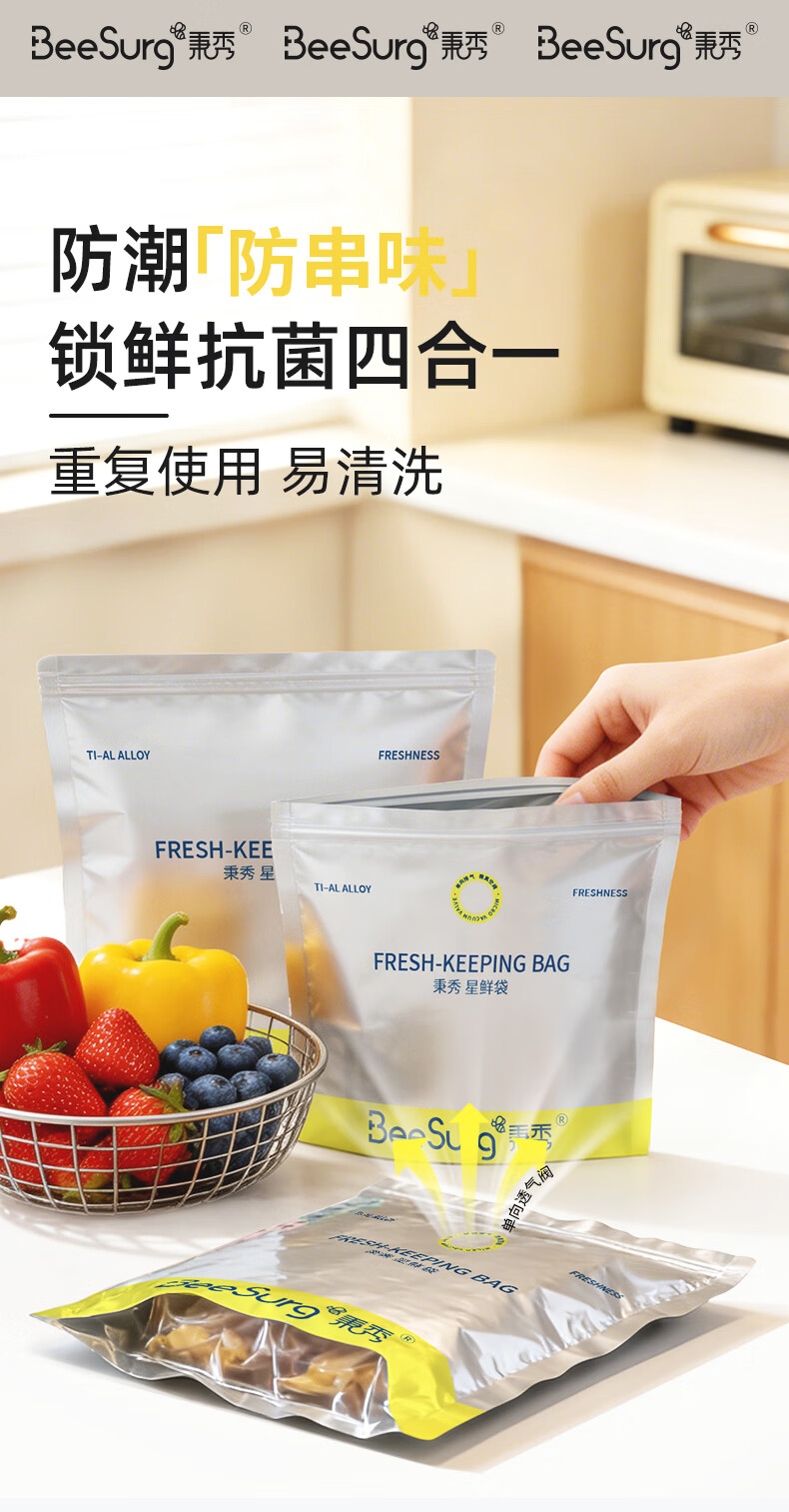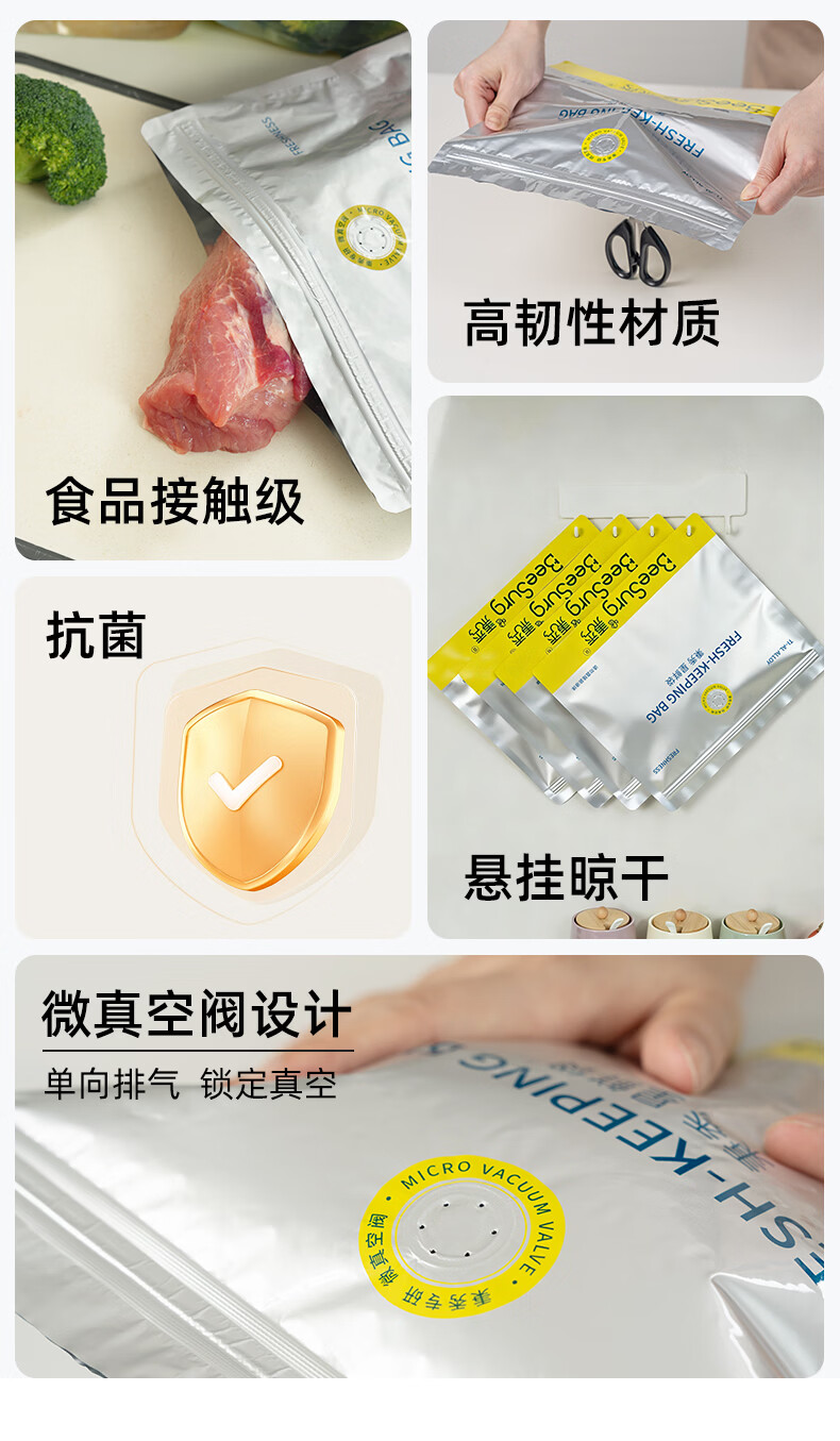 秉秀铝箔密封袋保鲜袋 食品级冰箱冷冻收纳抗菌锁鲜不串味可重复使用 【组合装】特大*6+大号*8+小号*8