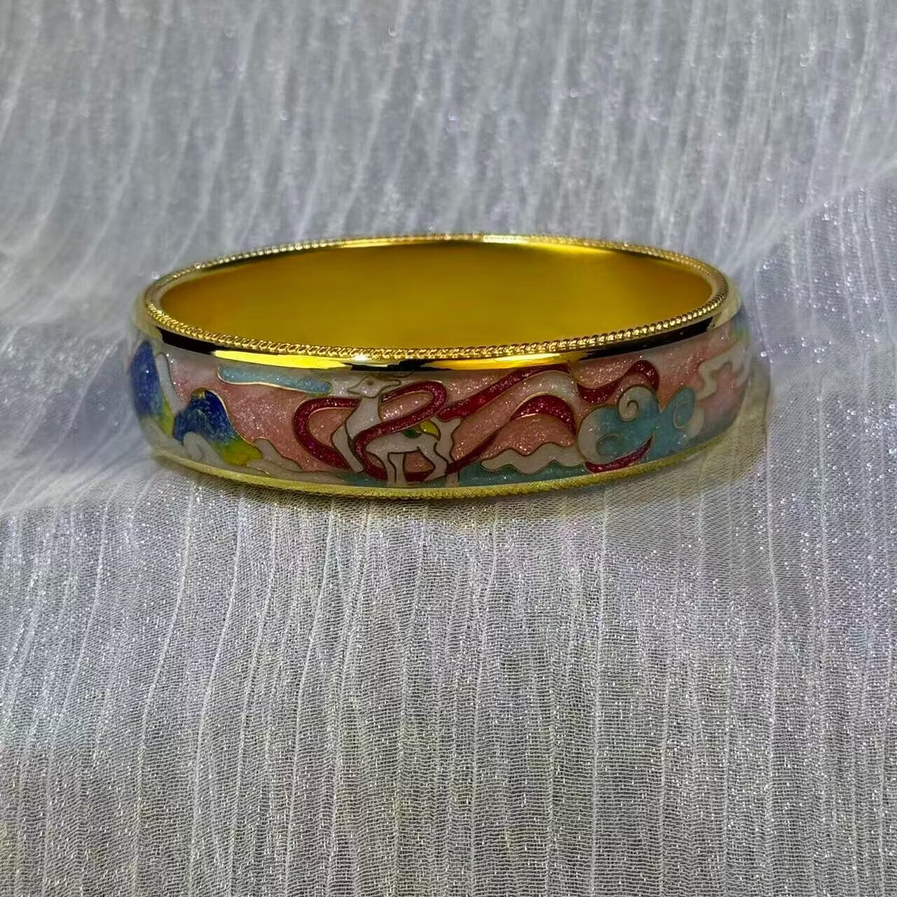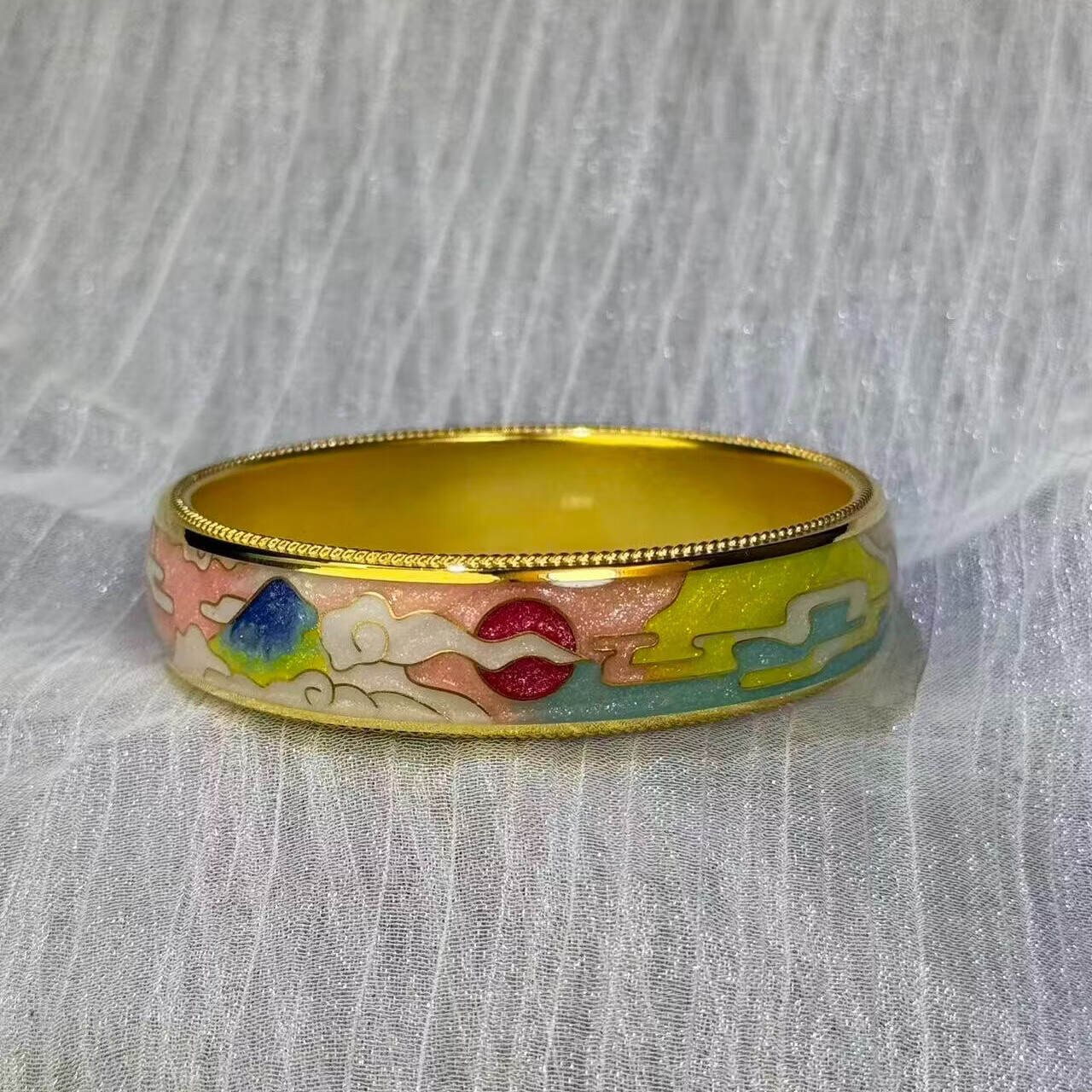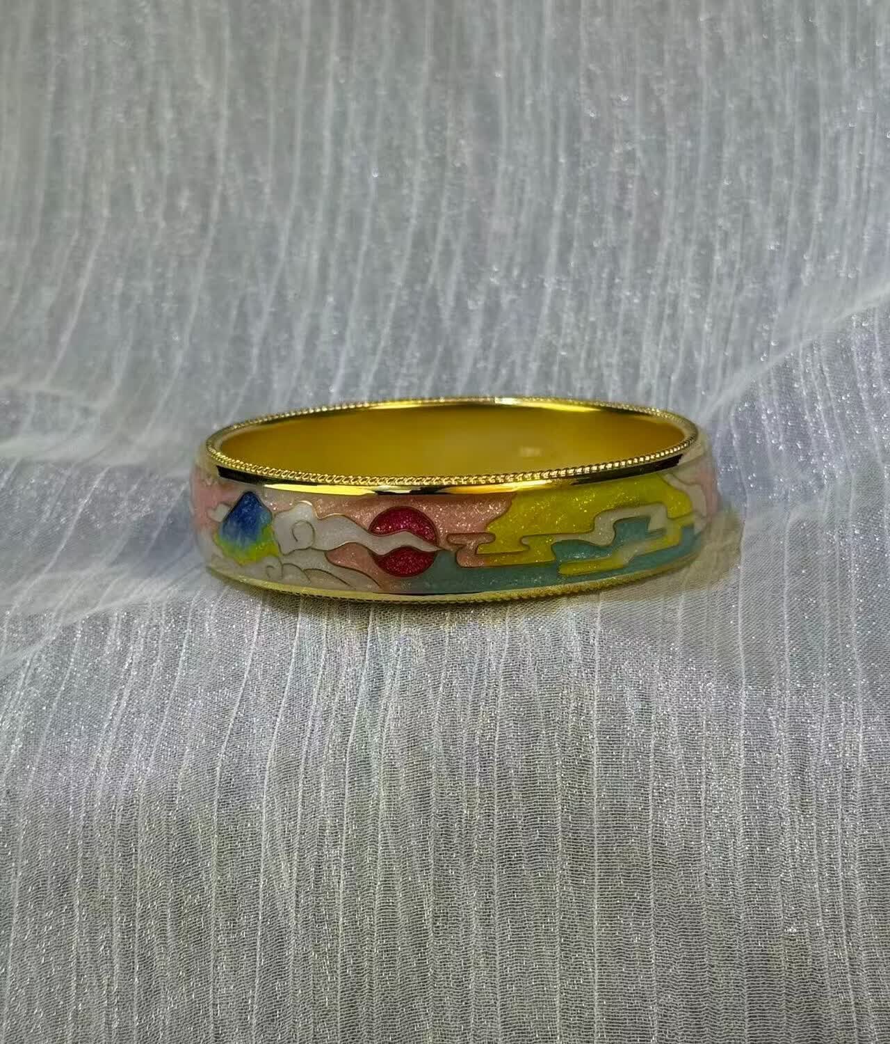 钻之银足银拍平珐琅彩手镯 黄色 60圈口约60克