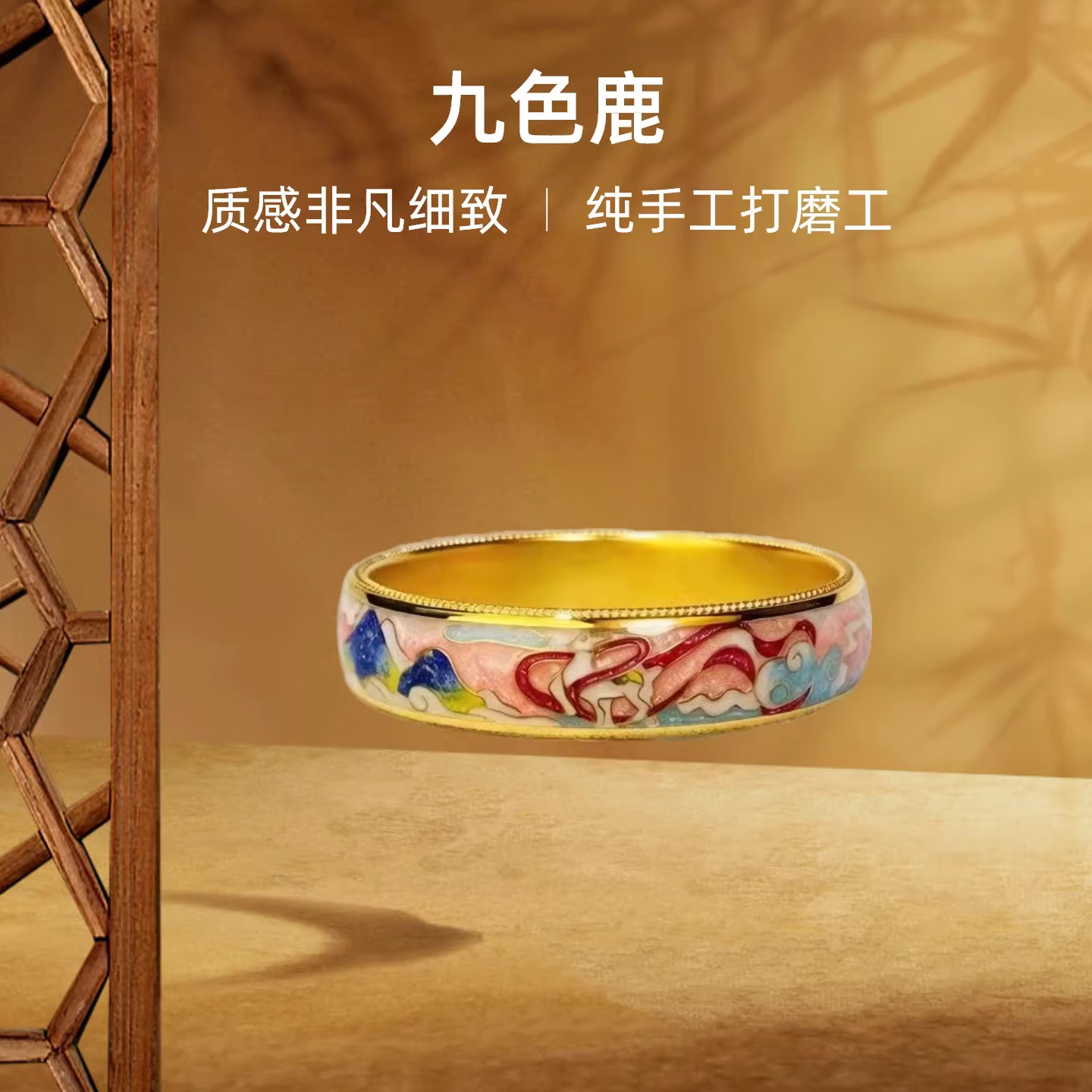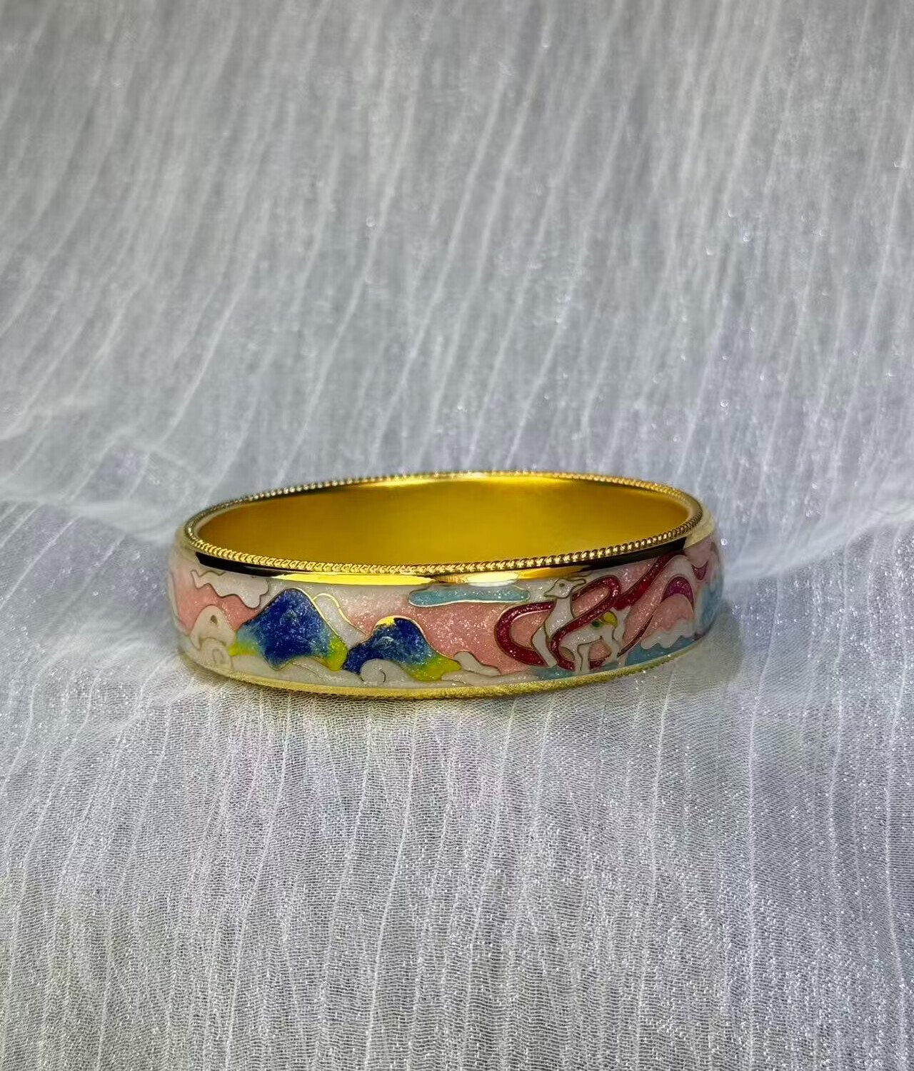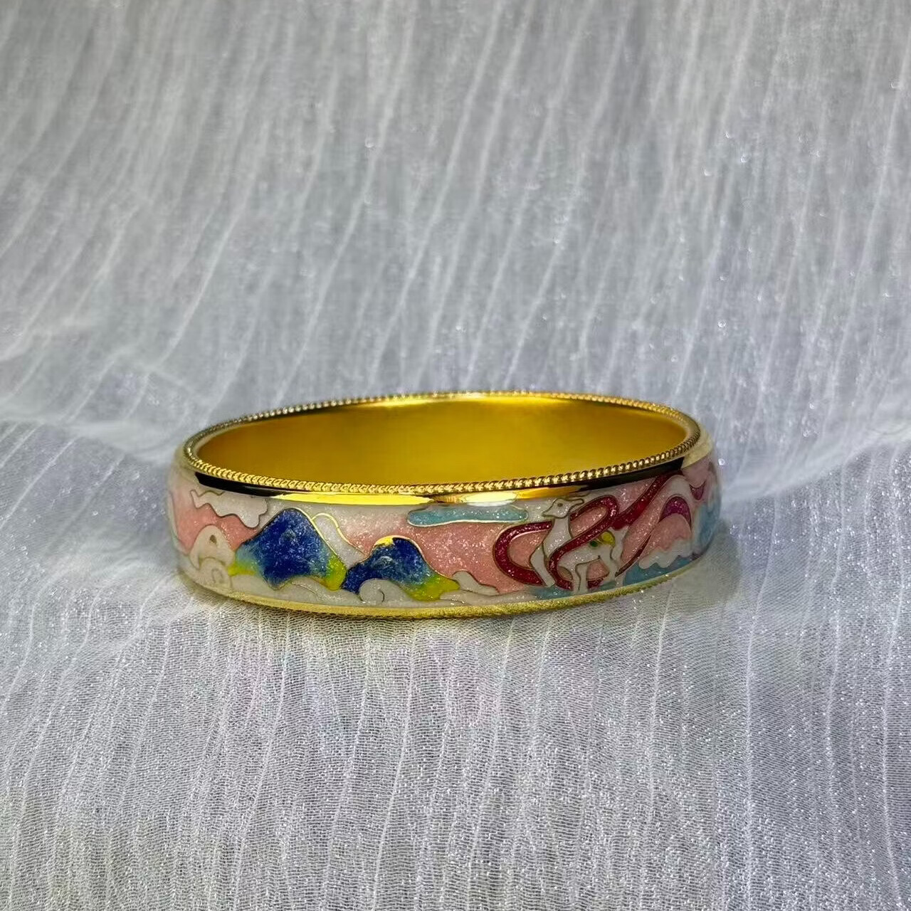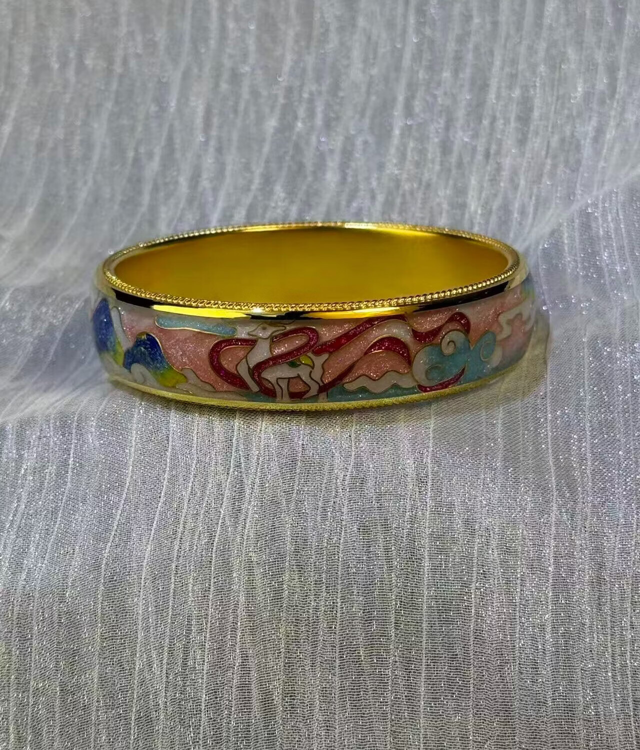 钻之银足银拍平珐琅彩手镯 黄色 60圈口约60克