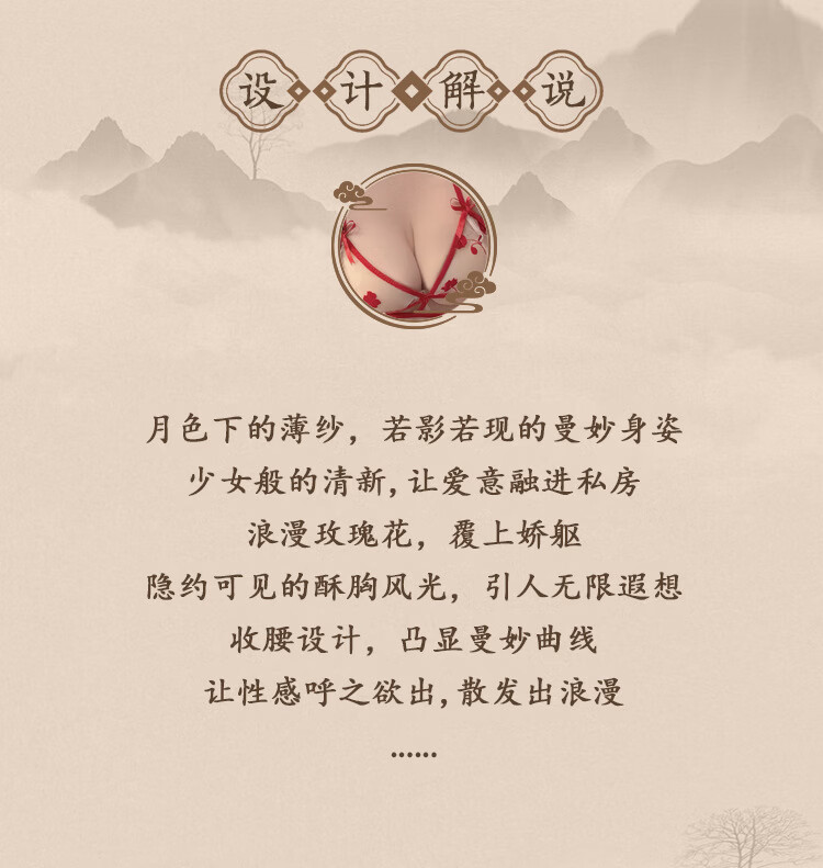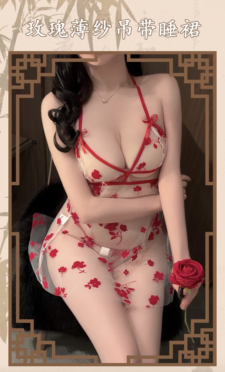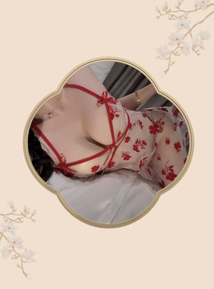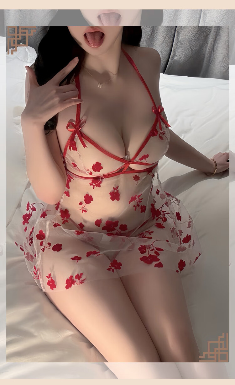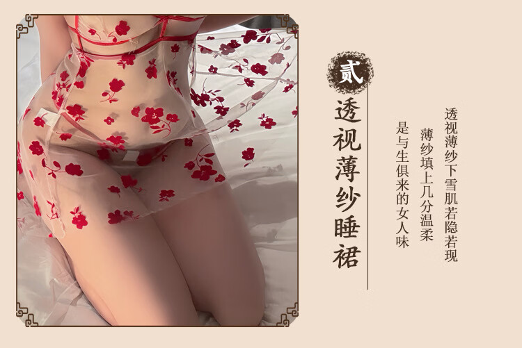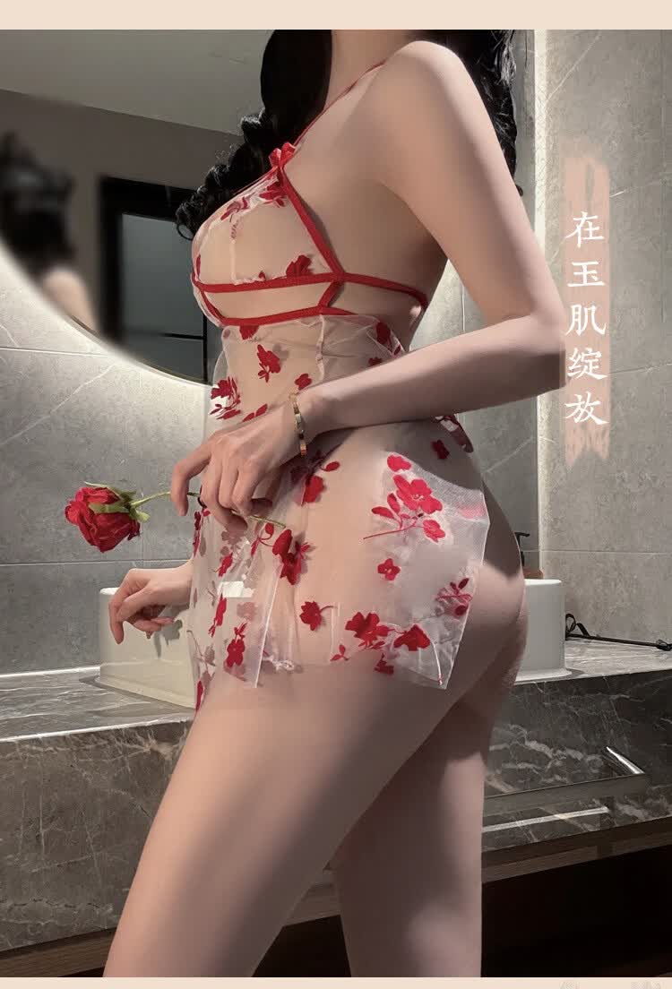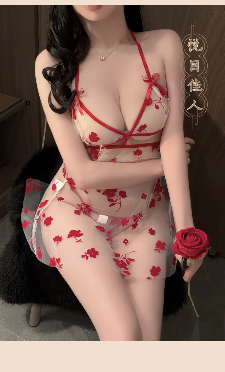玫瑰刺绣透视旗袍纯欲诱惑睡衣 红色+A45红 XL