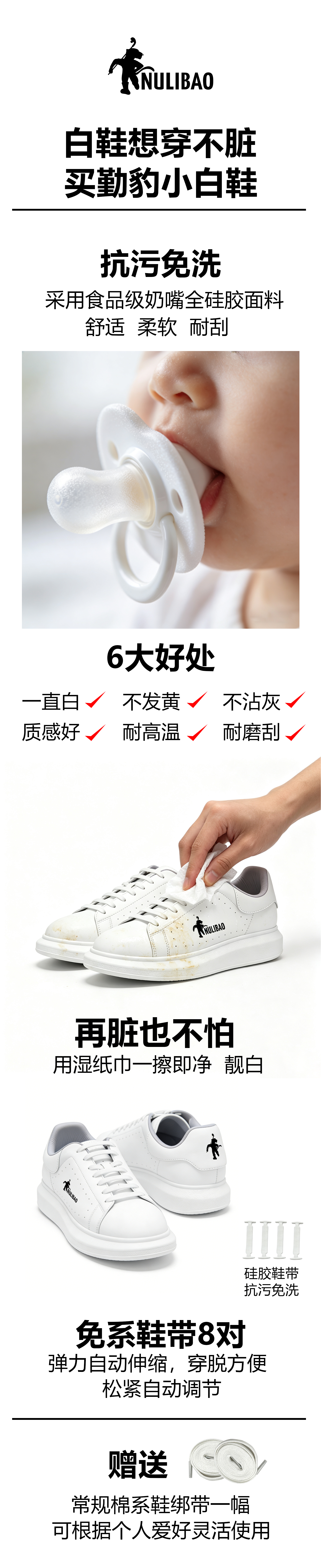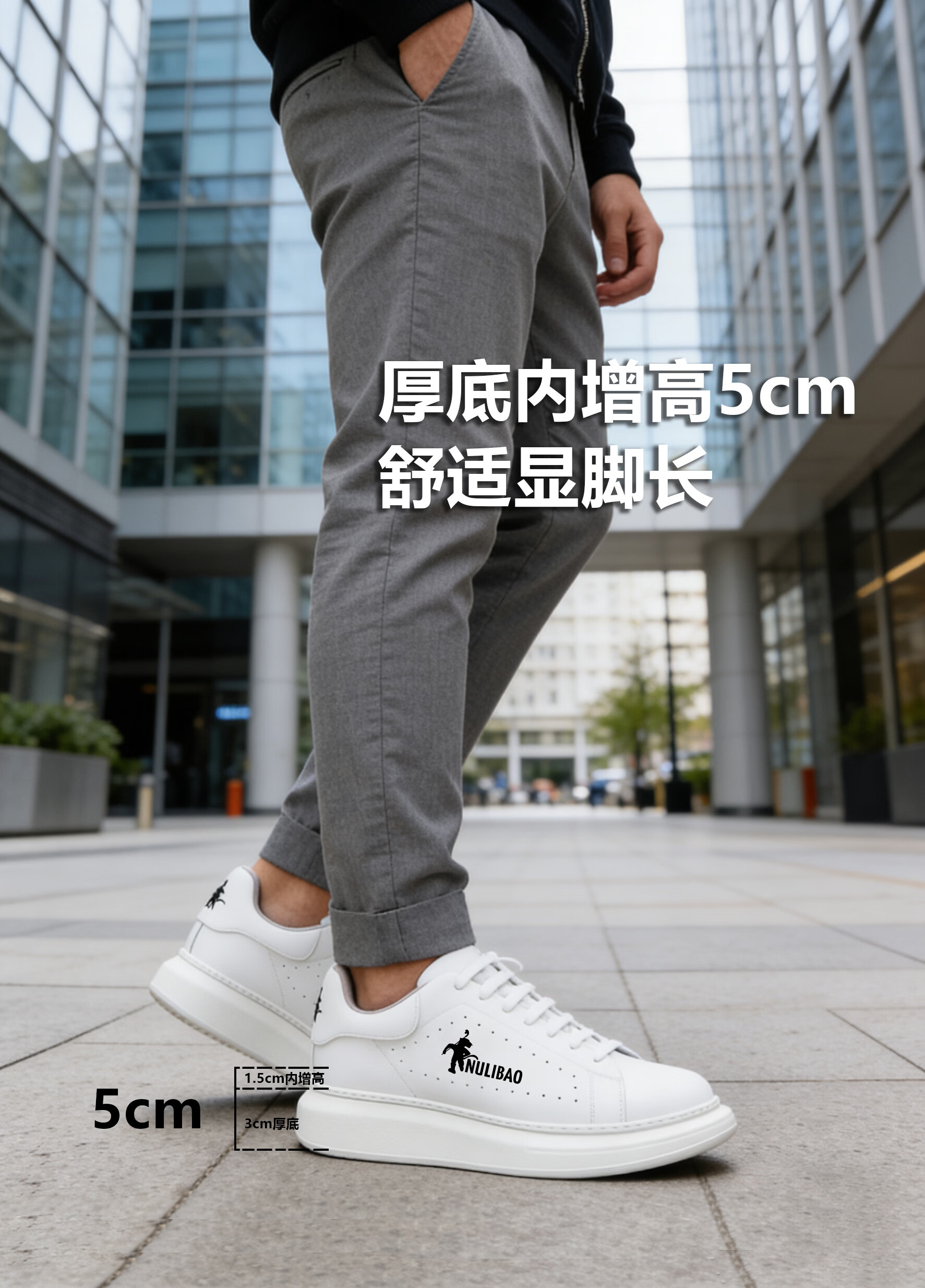 勤豹(NULIBAO)【抗污免洗】小白鞋男增高厚底透气休闲时尚潮流百搭轻便软底板鞋 白色 44 (270mm)