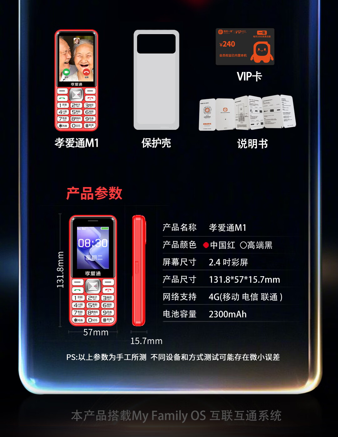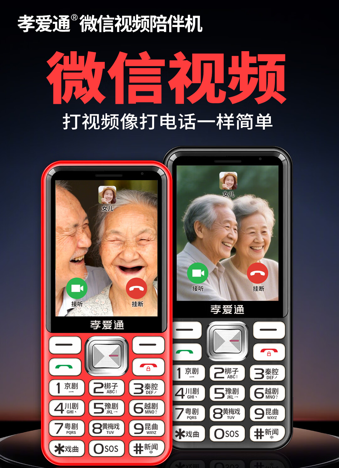 孝爱通2026新款M1送父母孝心老人机 一键AI语音助手 免插卡视频通话 大音量远程设置 红色(4G全网通)