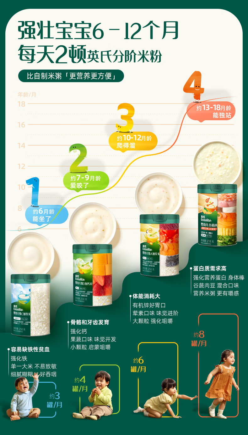 英氏米粉罐装套组婴幼儿高铁米粉6-12个月辅食宝宝营养米糊 【3阶9月+】营养进阶 258g*3罐