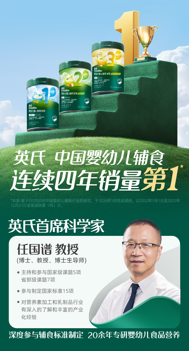 英氏(Engnice)婴幼儿米粉米糊高铁 6个月宝宝强化铁米粉营养辅食 1阶维C加铁135g+ 30g*1盒