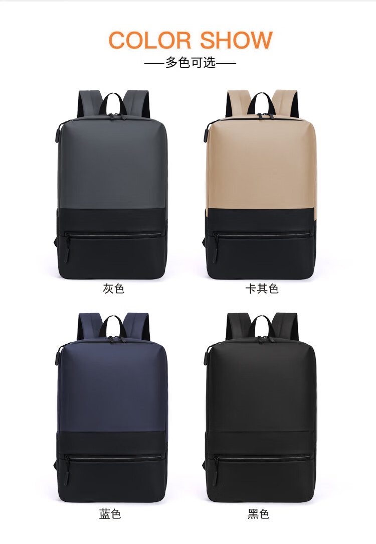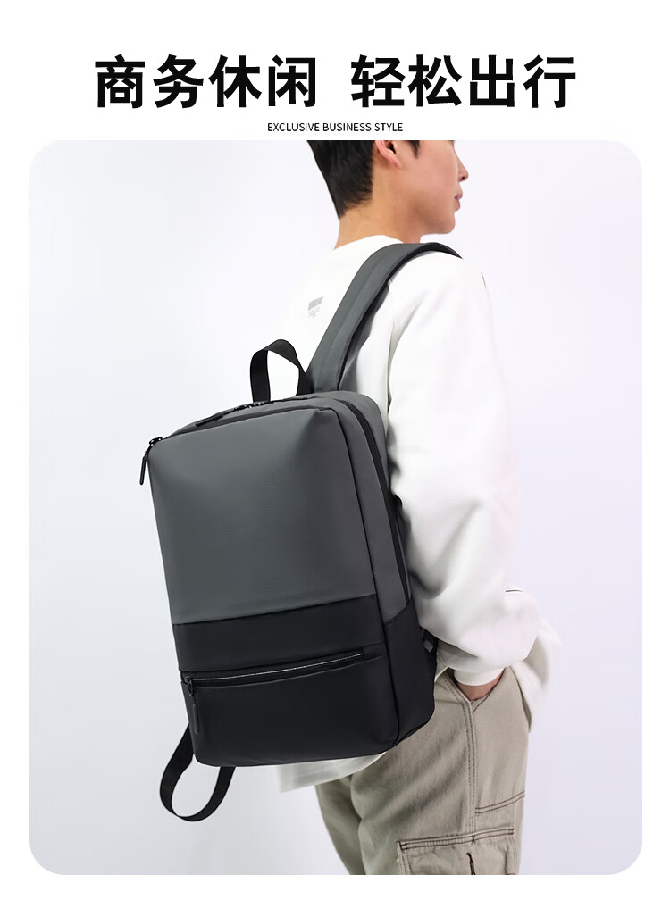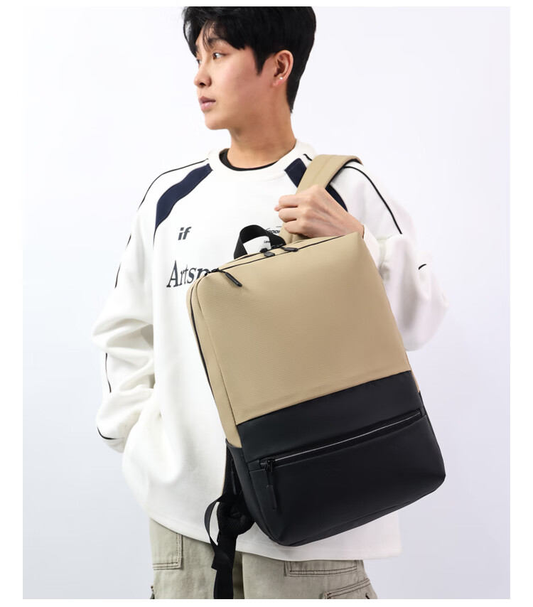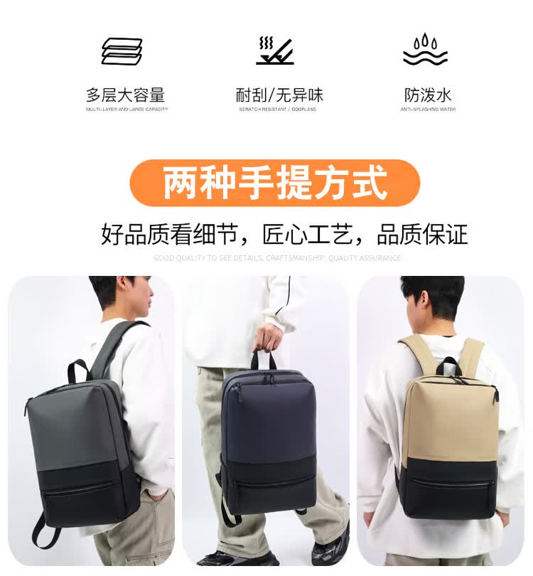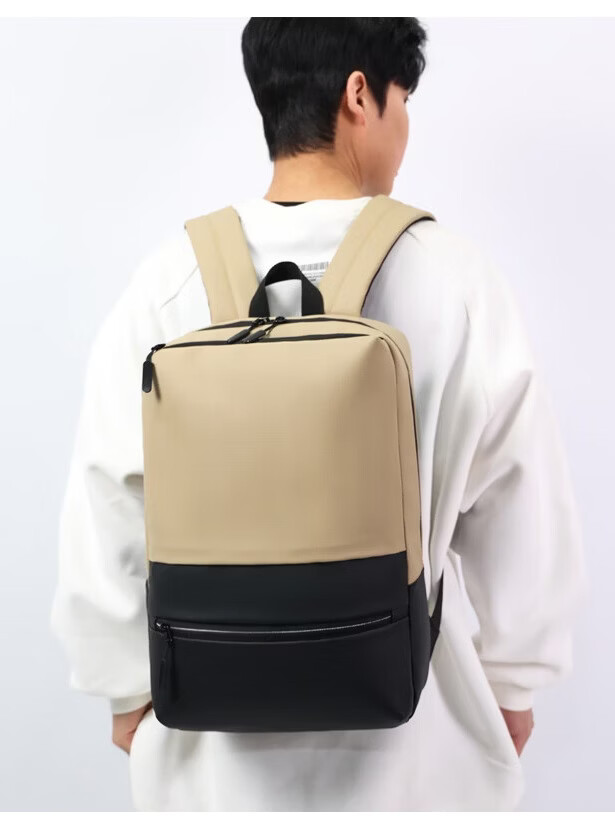 男士商务大容量轻便电脑双肩包适合大学生高中生出差旅行使用 卡其色 15.6