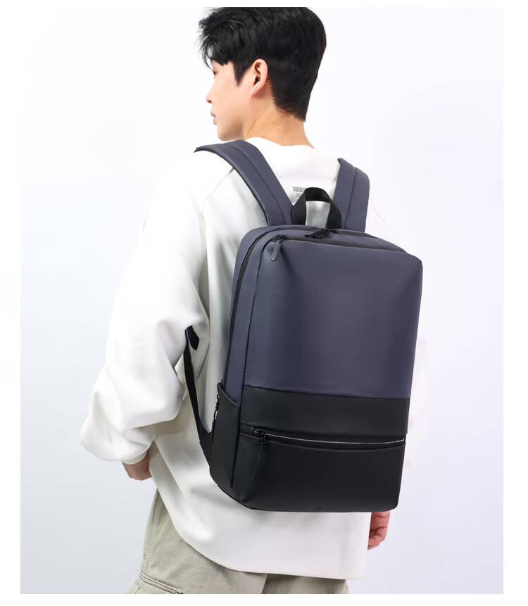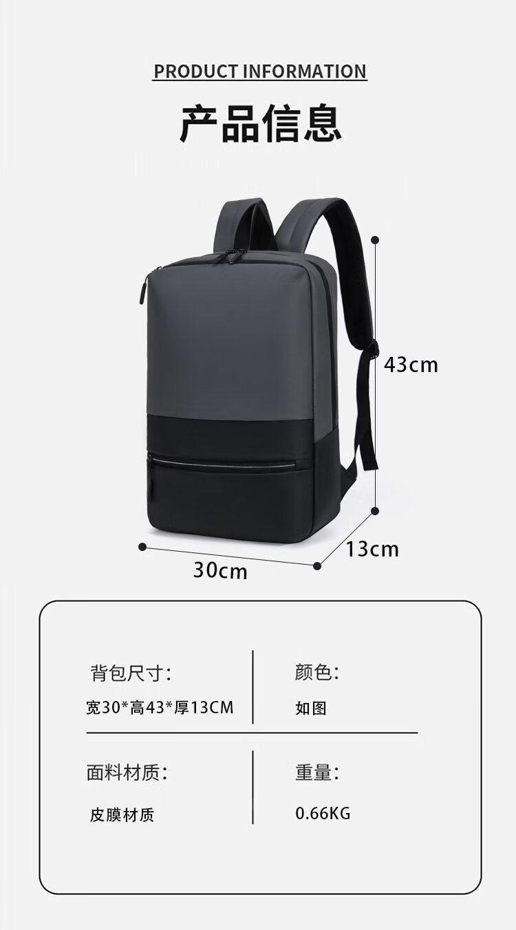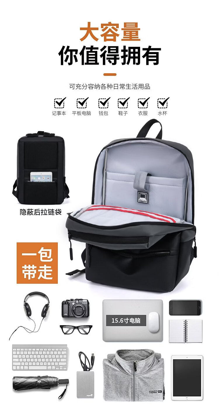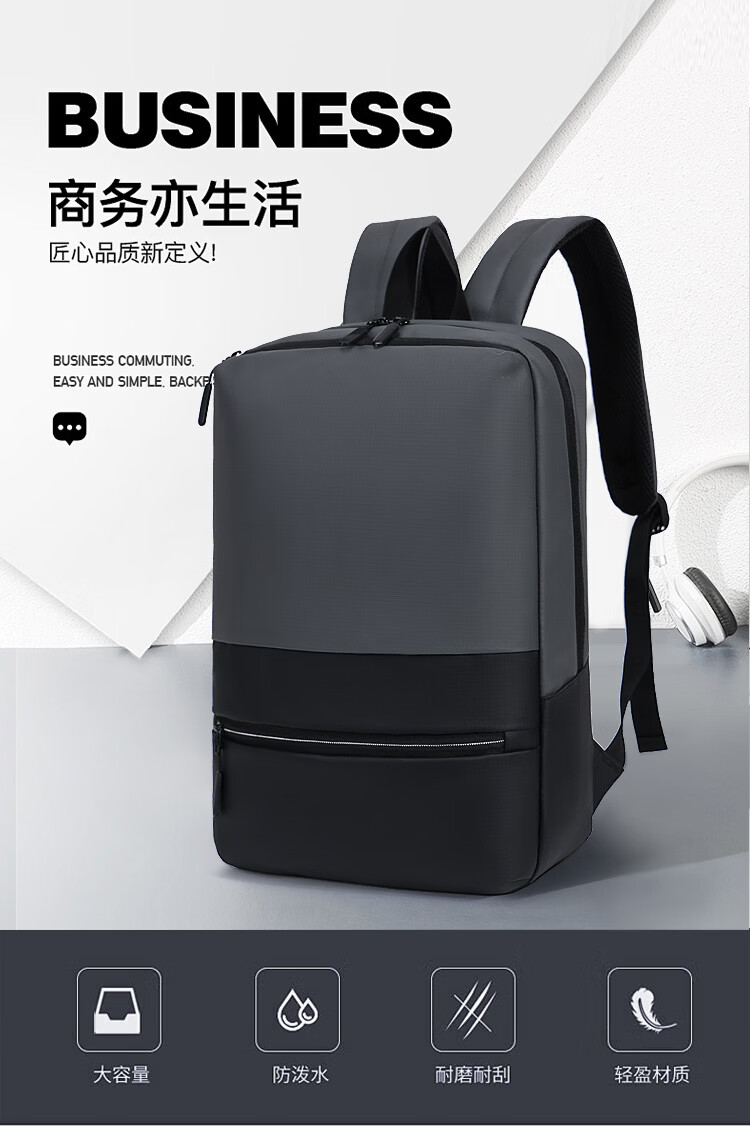男士商务大容量轻便电脑双肩包适合大学生高中生出差旅行使用 卡其色 15.6