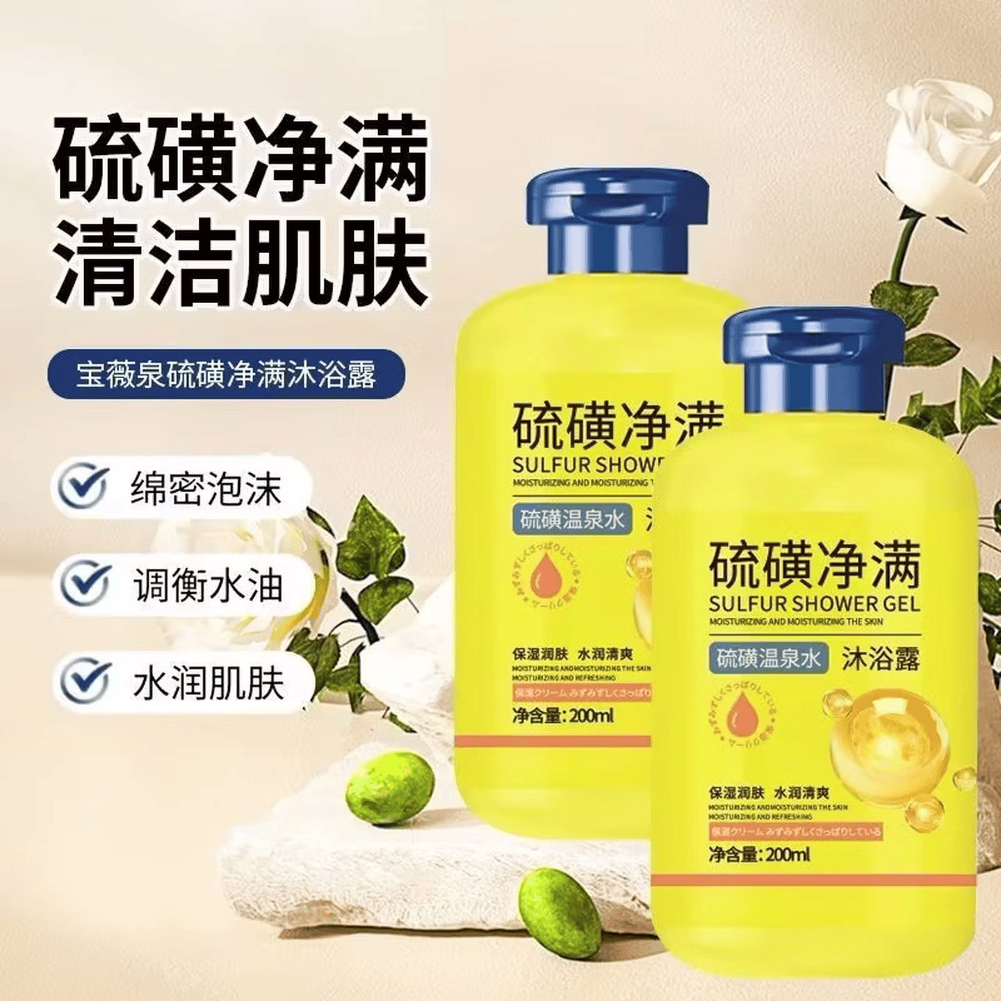 硫磺净螨沐浴露后背祛痘控油留香男女通用净螨洁肤保湿 两瓶
