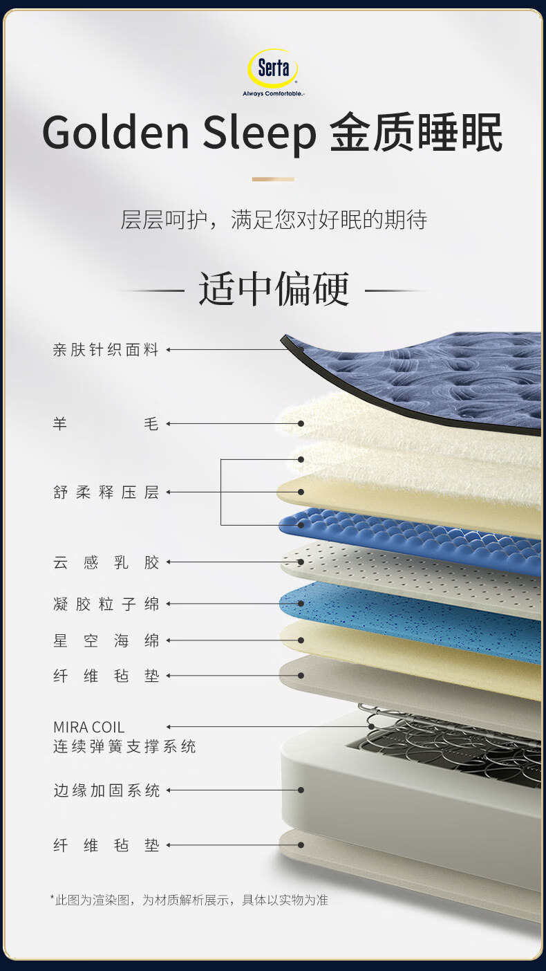 舒达(serta)床垫1.5/1.8*2米MIRA COIL连续弹簧乳胶床垫凝胶记忆棉适中偏硬 奥若拉 180*200cm