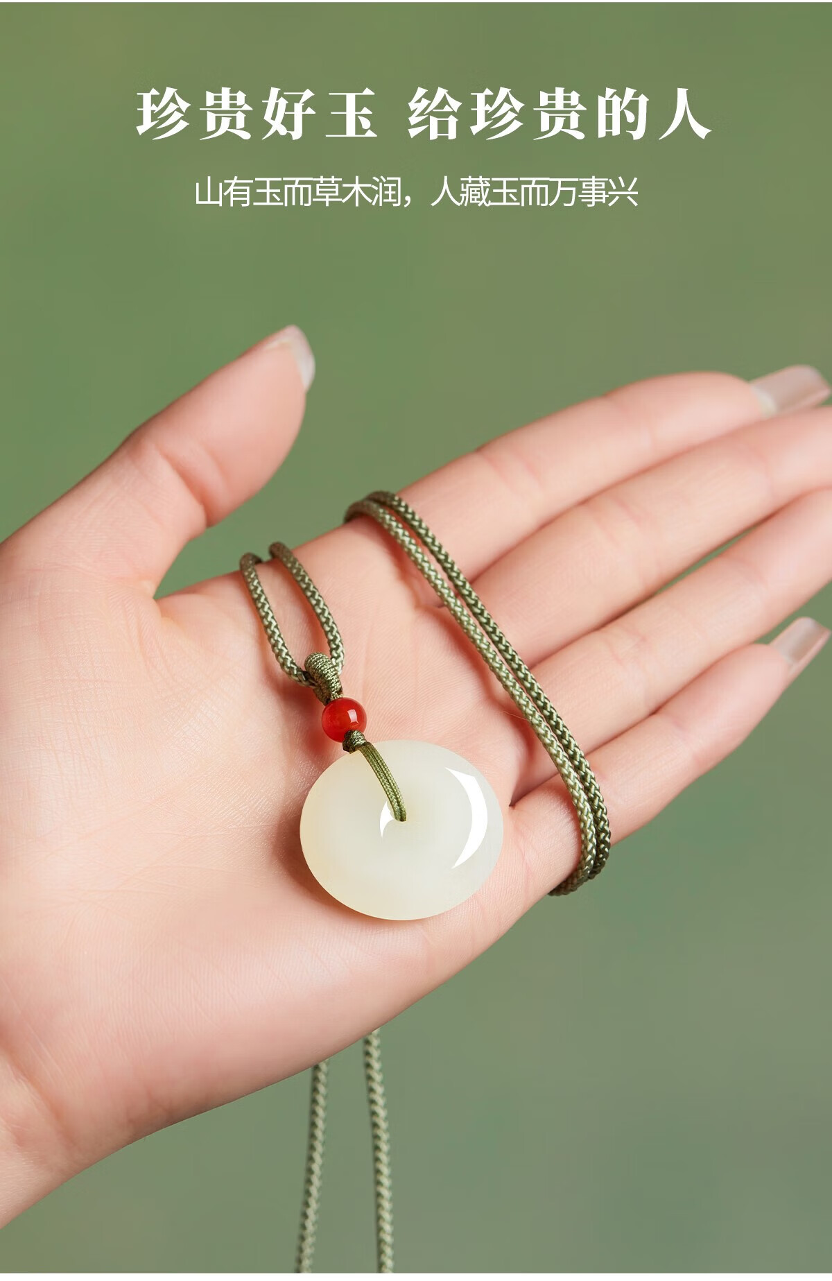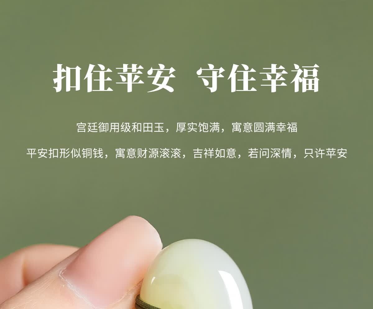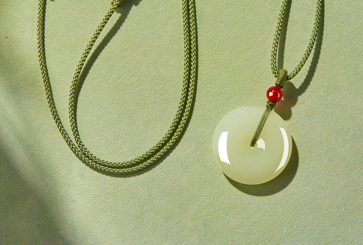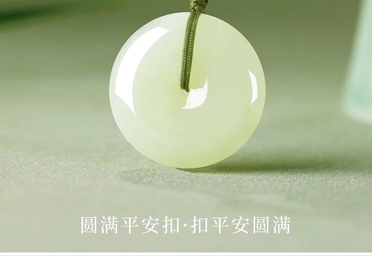百年百年老凰祥保真和田玉平安扣吊坠玉佩天然玉石玉坠项链男女生 百年老凰祥 和田玉锦鲤平安扣青绳28*28单面