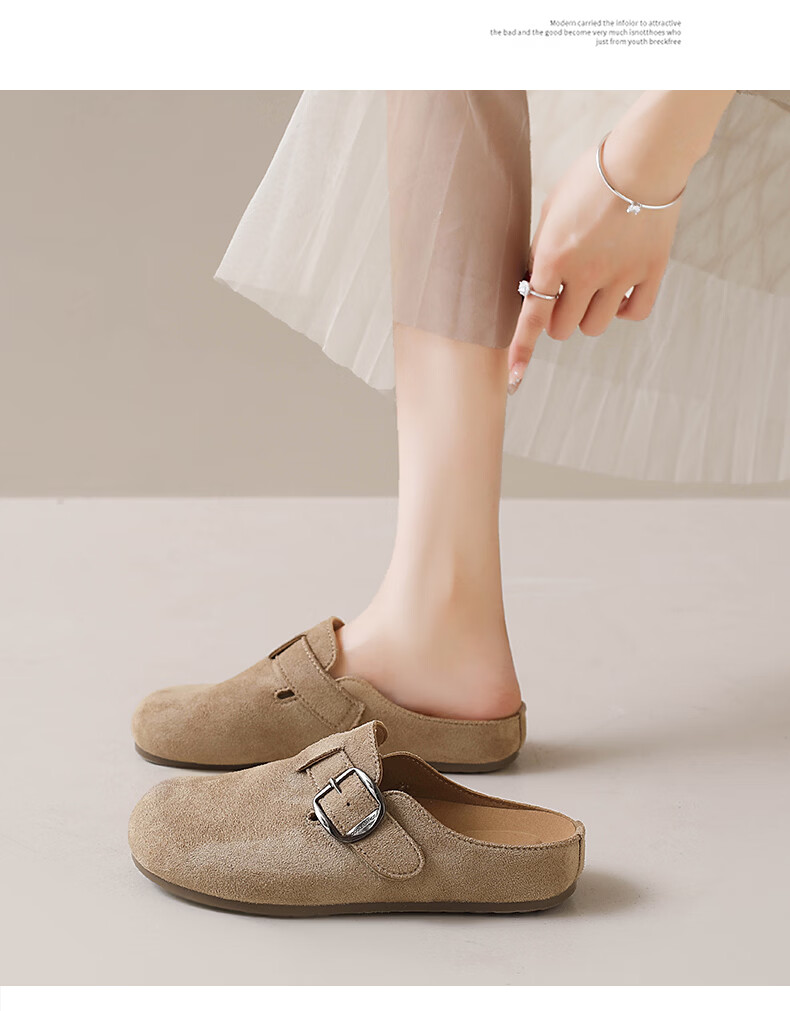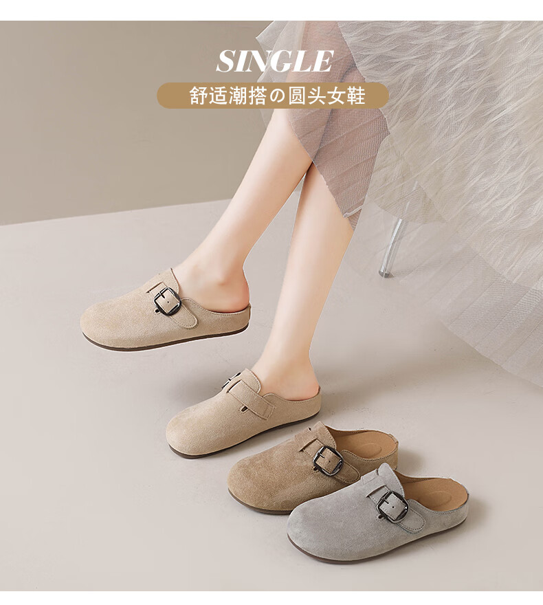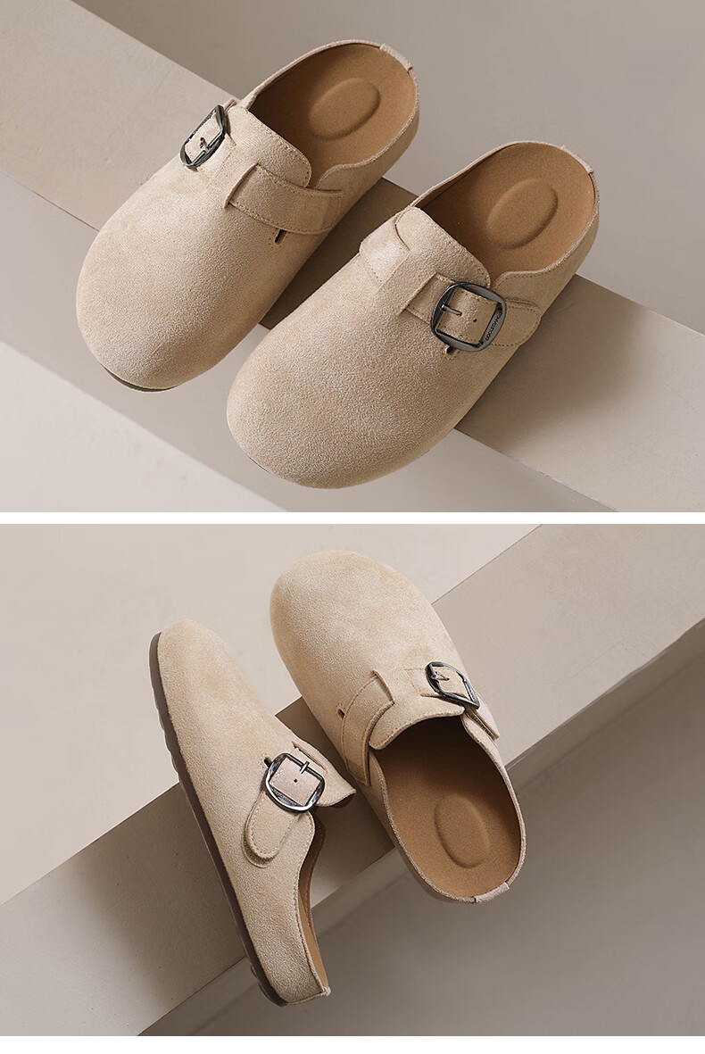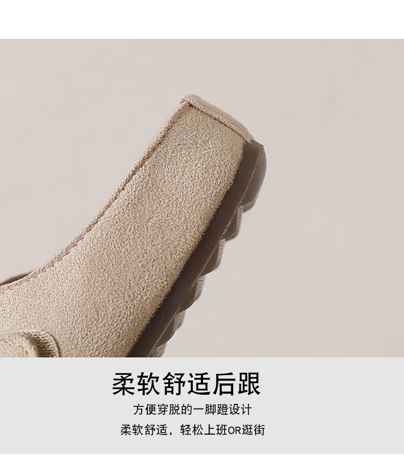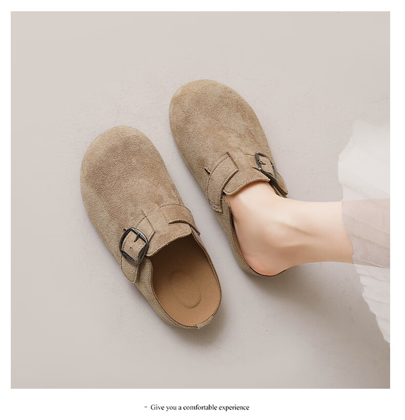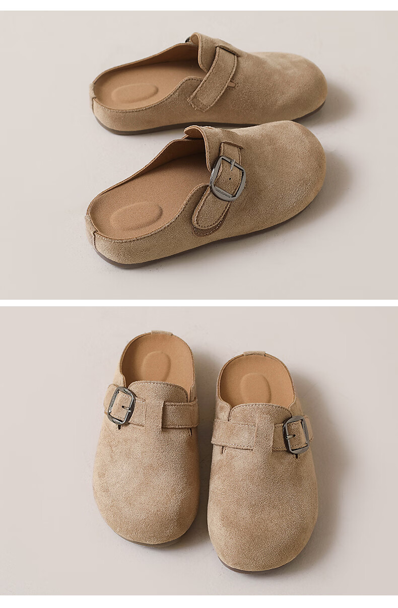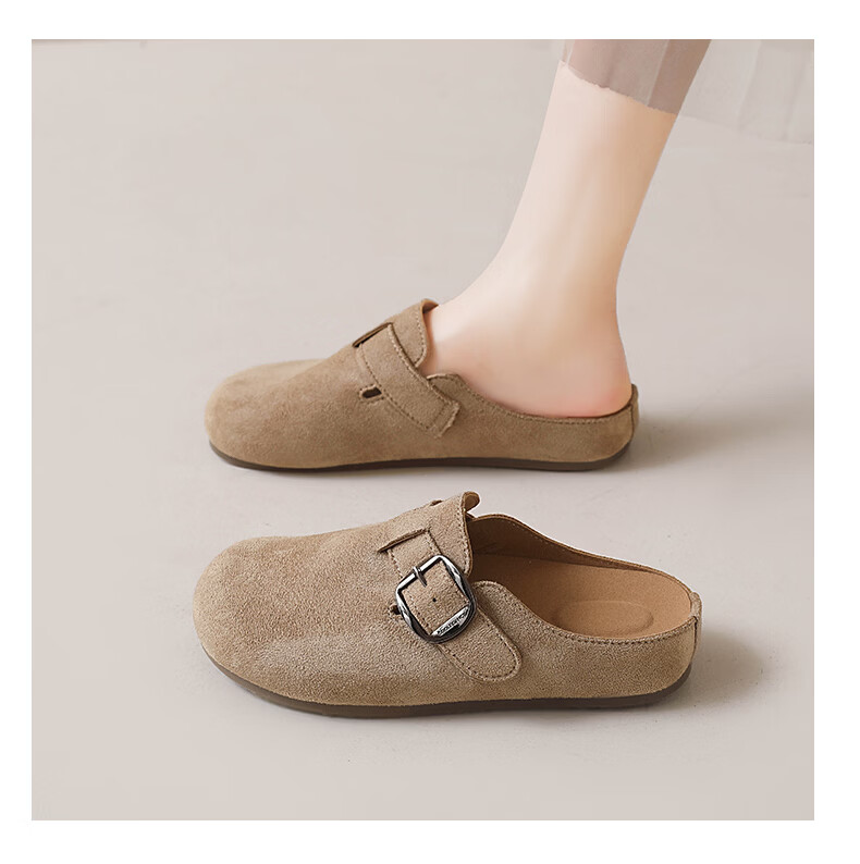 居安康厚底内增高半拖勃肯鞋女春夏一脚蹬软底外穿拖鞋2026百搭休闲单鞋 卡其色 36