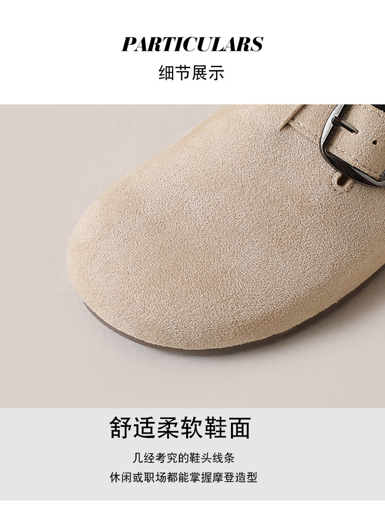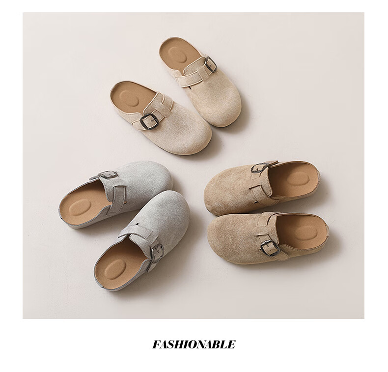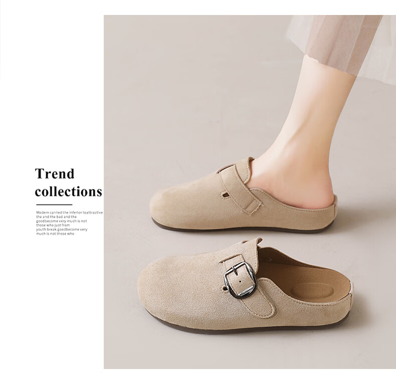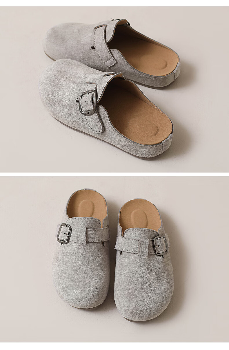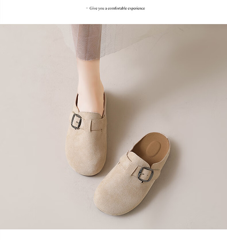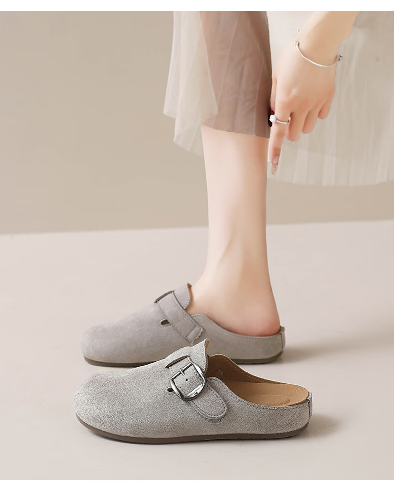 居安康厚底内增高半拖勃肯鞋女春夏一脚蹬软底外穿拖鞋2026百搭休闲单鞋 卡其色 36