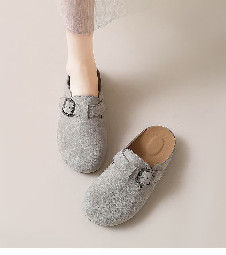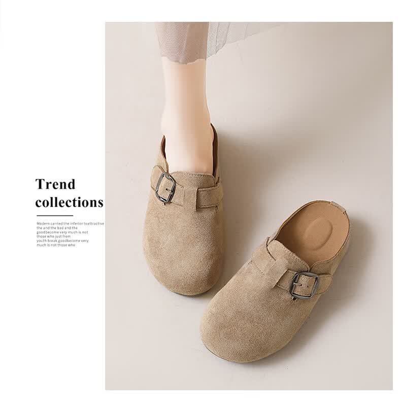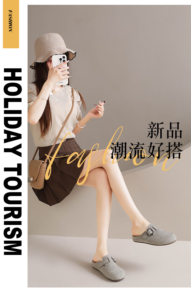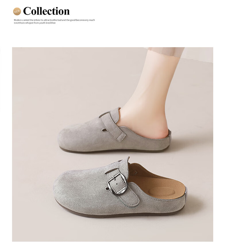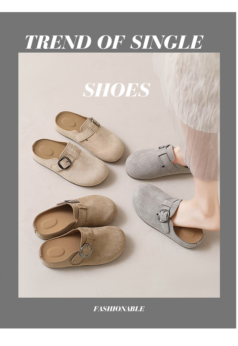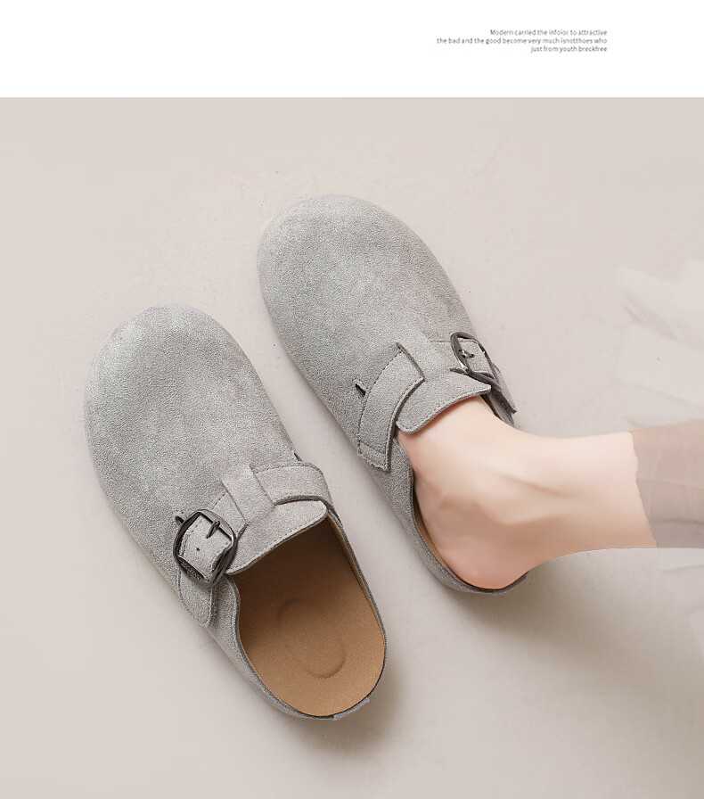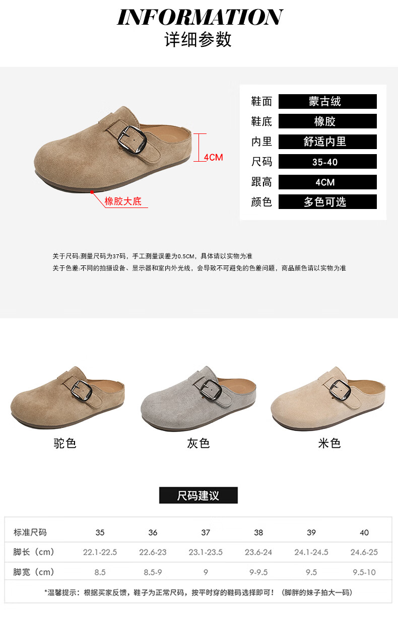 居安康厚底内增高半拖勃肯鞋女春夏一脚蹬软底外穿拖鞋2026百搭休闲单鞋 卡其色 36