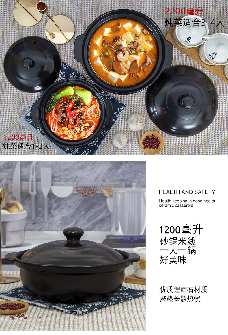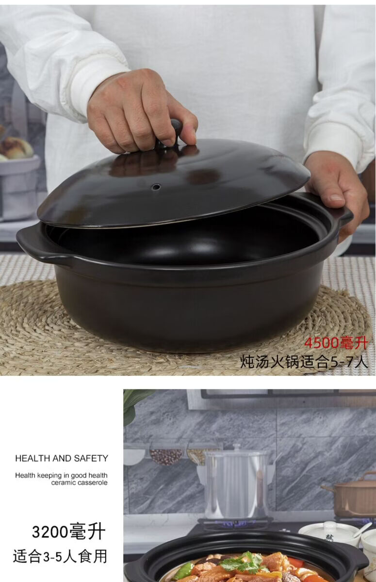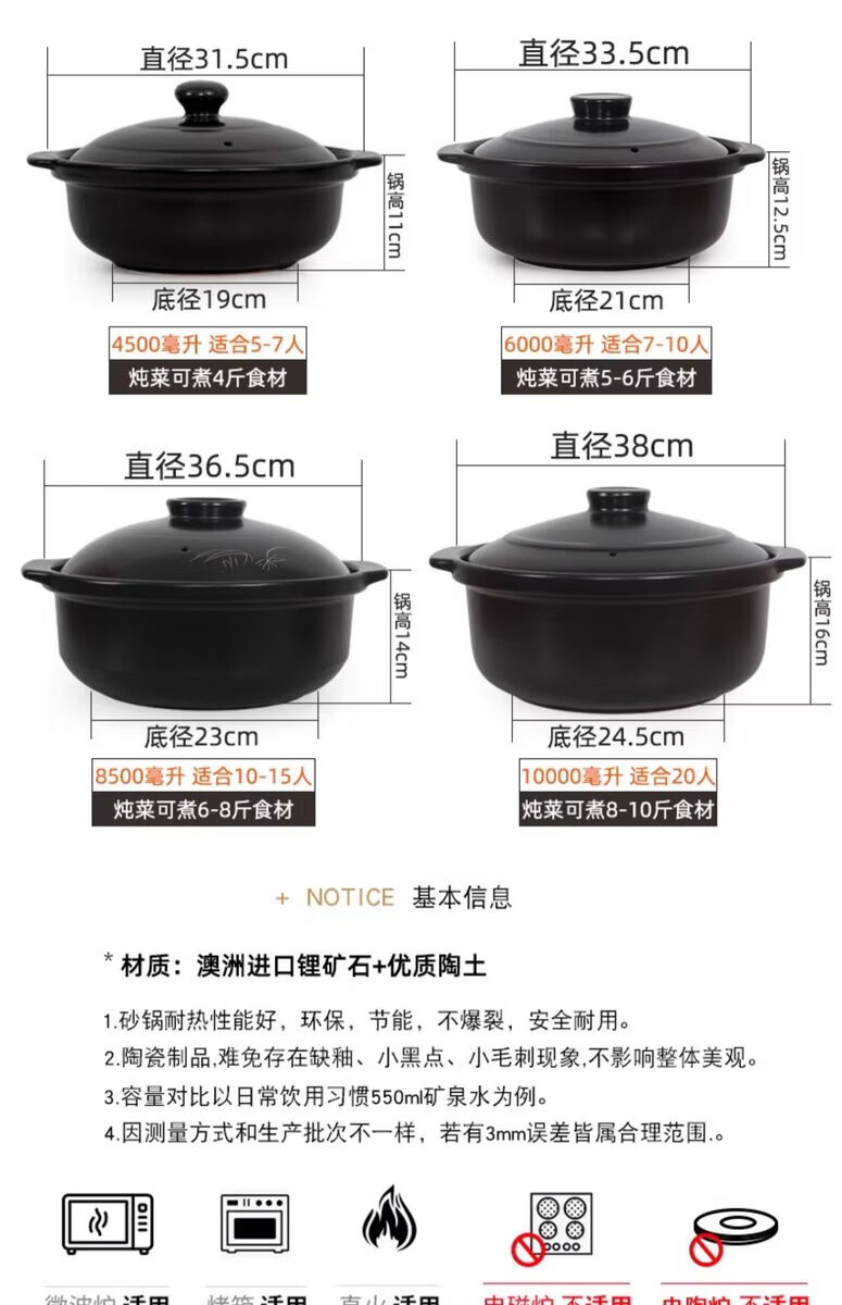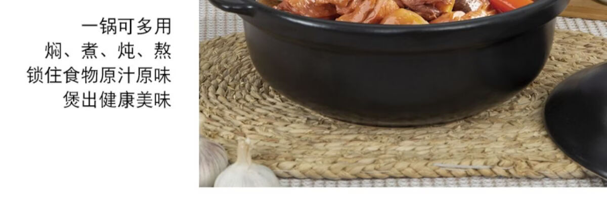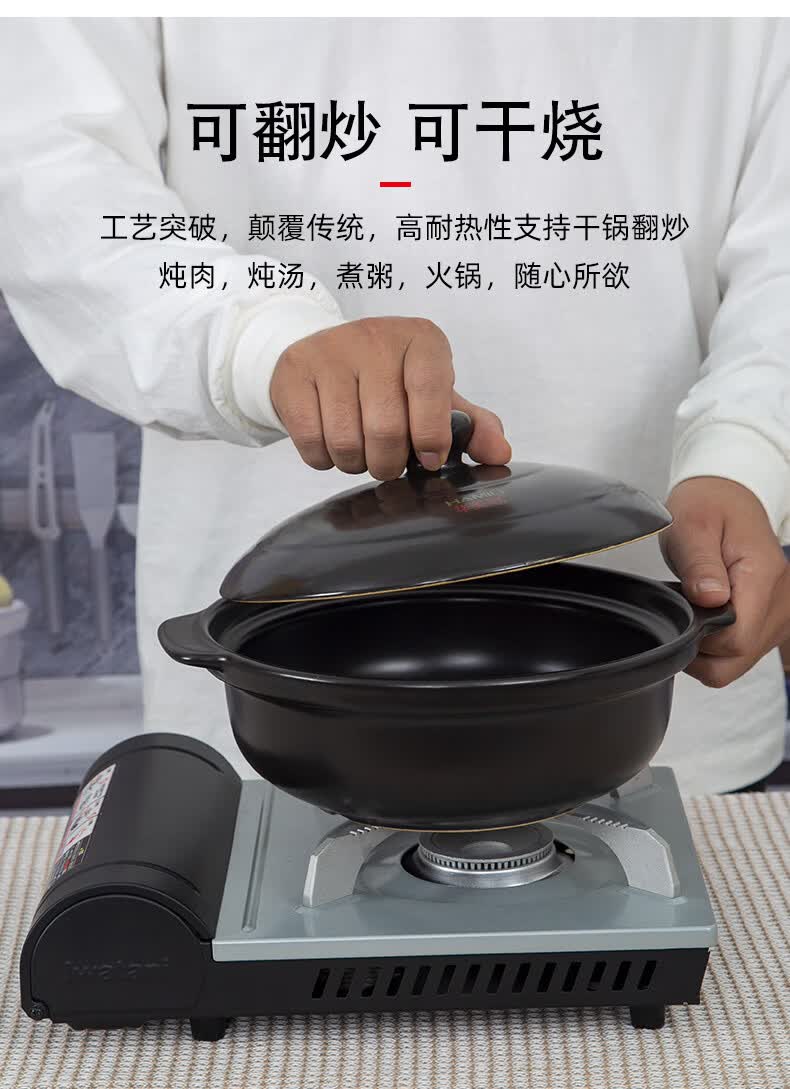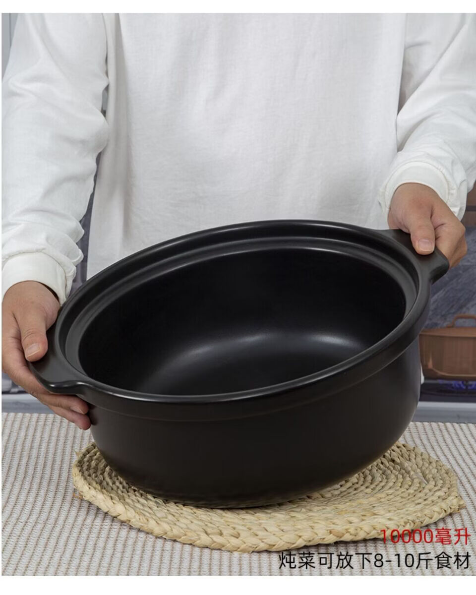 咏幻华美冠耐高温砂锅 商用陶瓷煲仔饭锅 中式风格陶土米线锅 华美冠平锅10000毫升[无盖子]直径 0ml