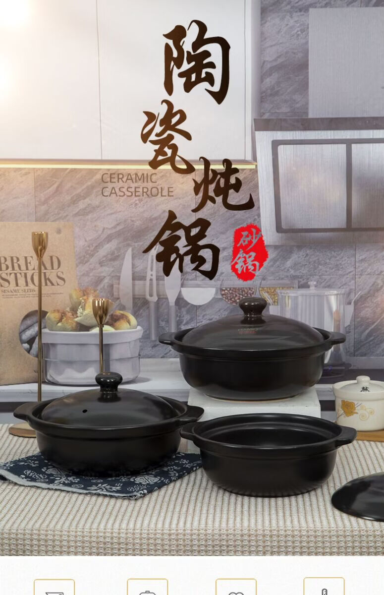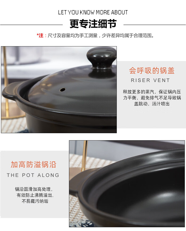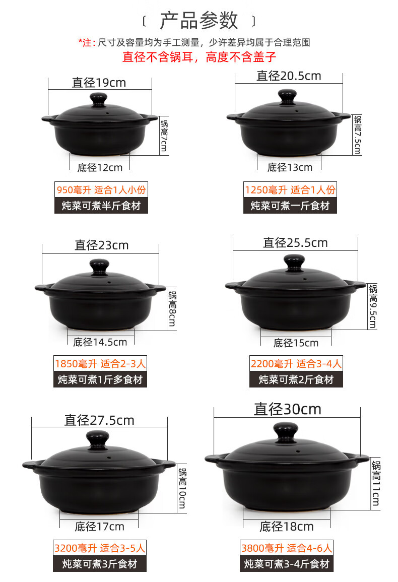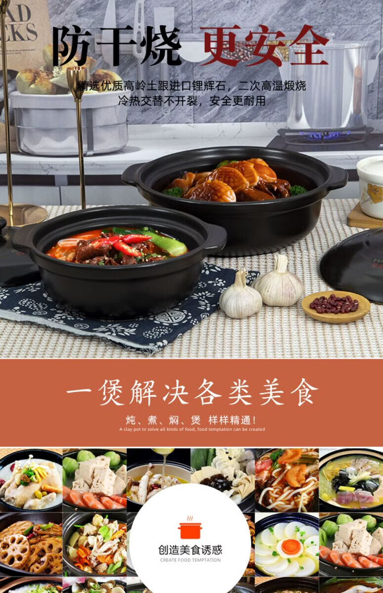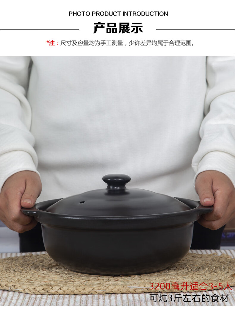 咏幻华美冠耐高温砂锅 商用陶瓷煲仔饭锅 中式风格陶土米线锅 华美冠平锅10000毫升[无盖子]直径 0ml