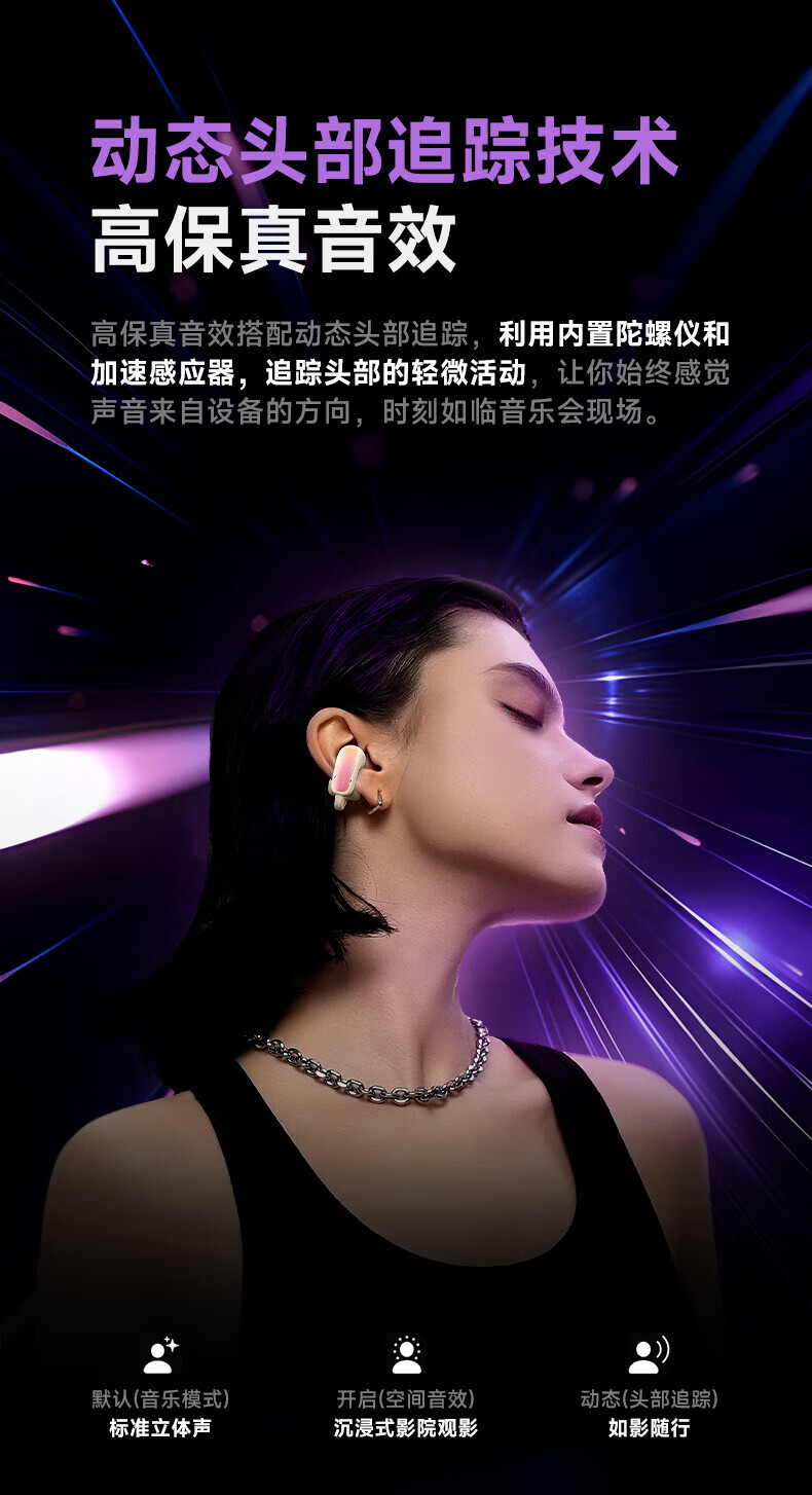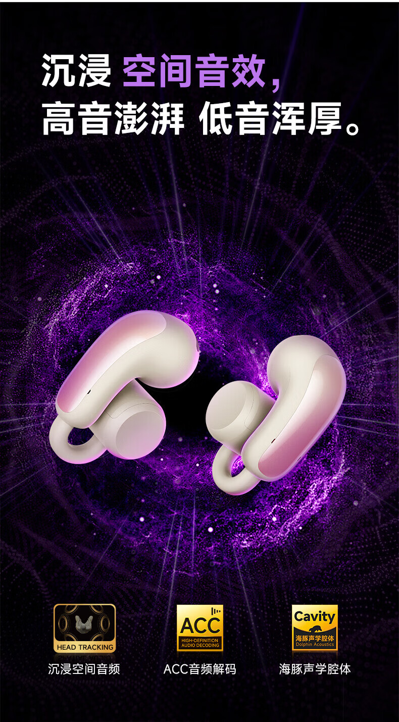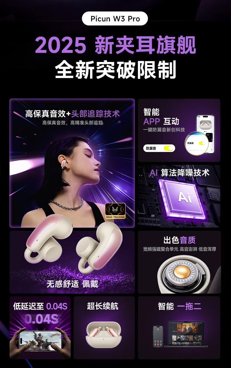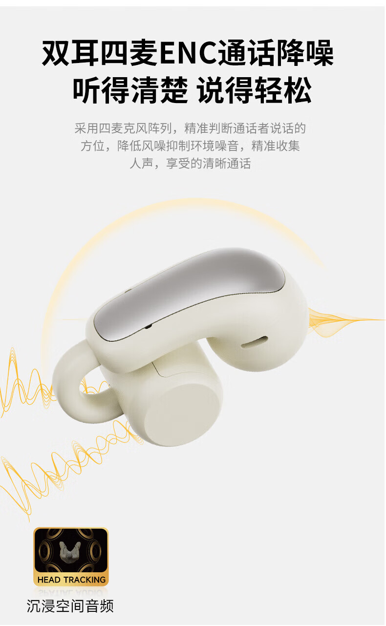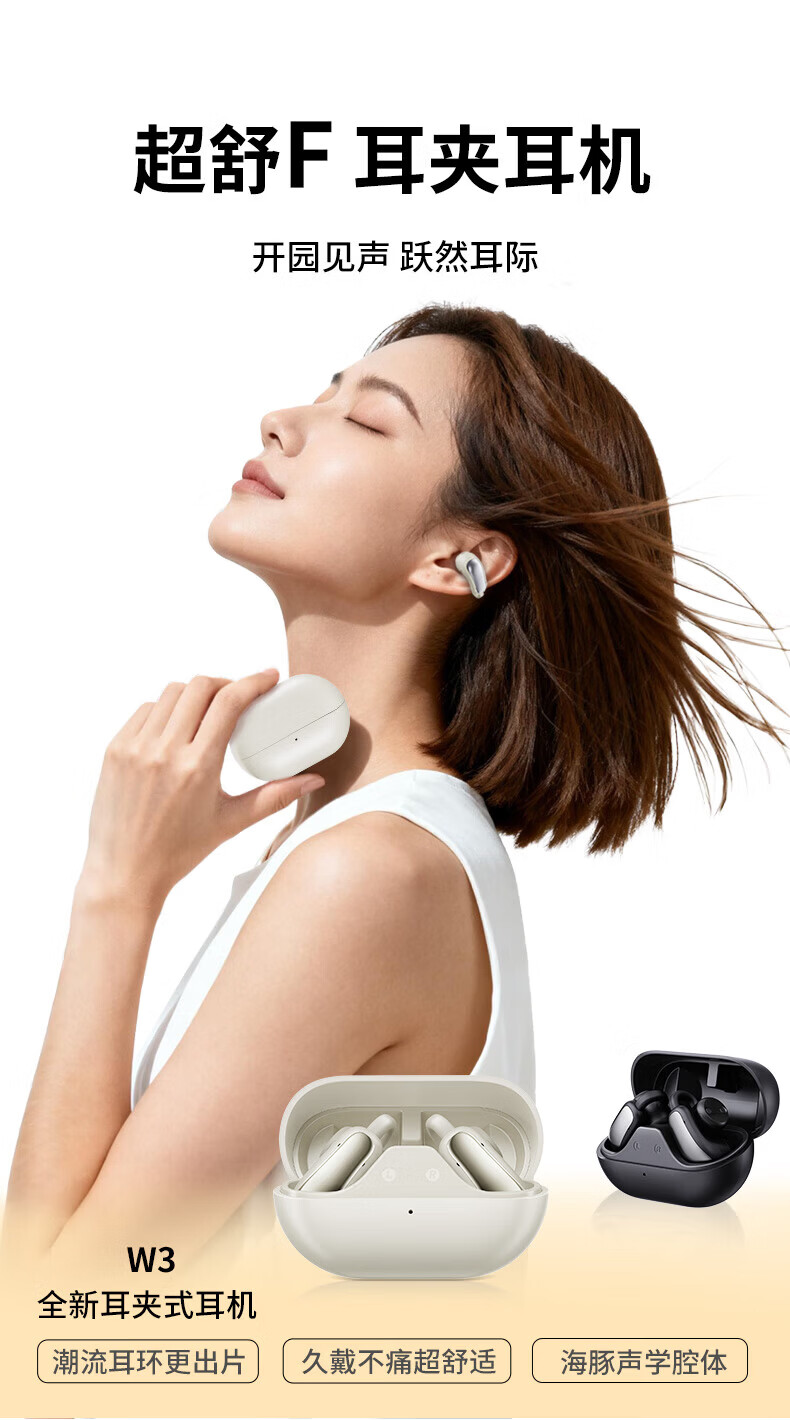 园世W3 耳夹式蓝牙耳机 开放式不入耳无线耳机 跑步运动游戏通话降噪 动态头部追踪丨智能APP丨W3 Pro