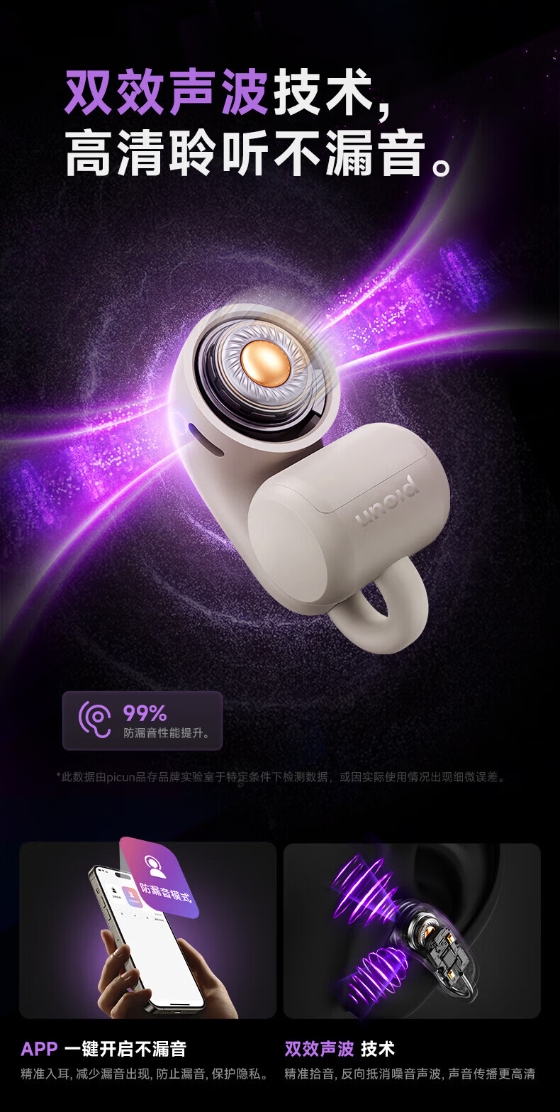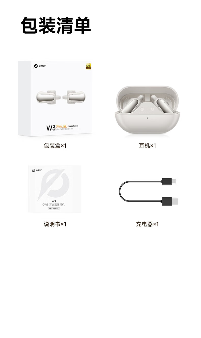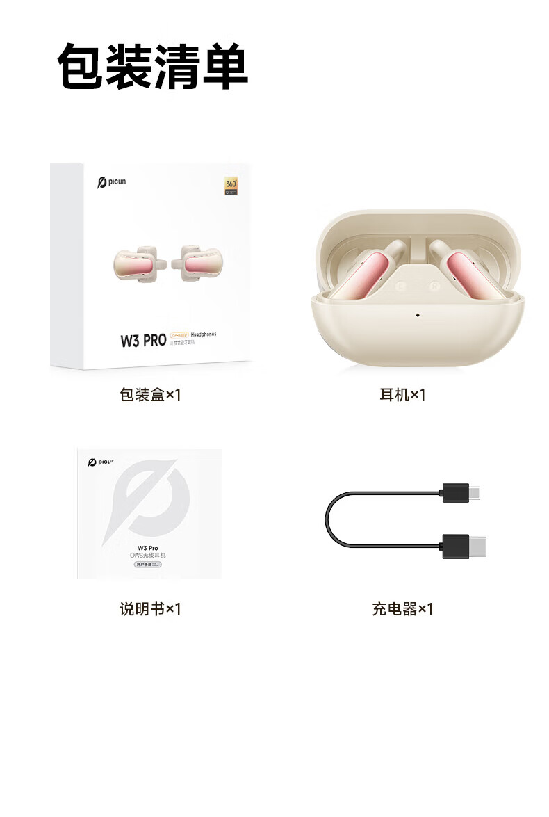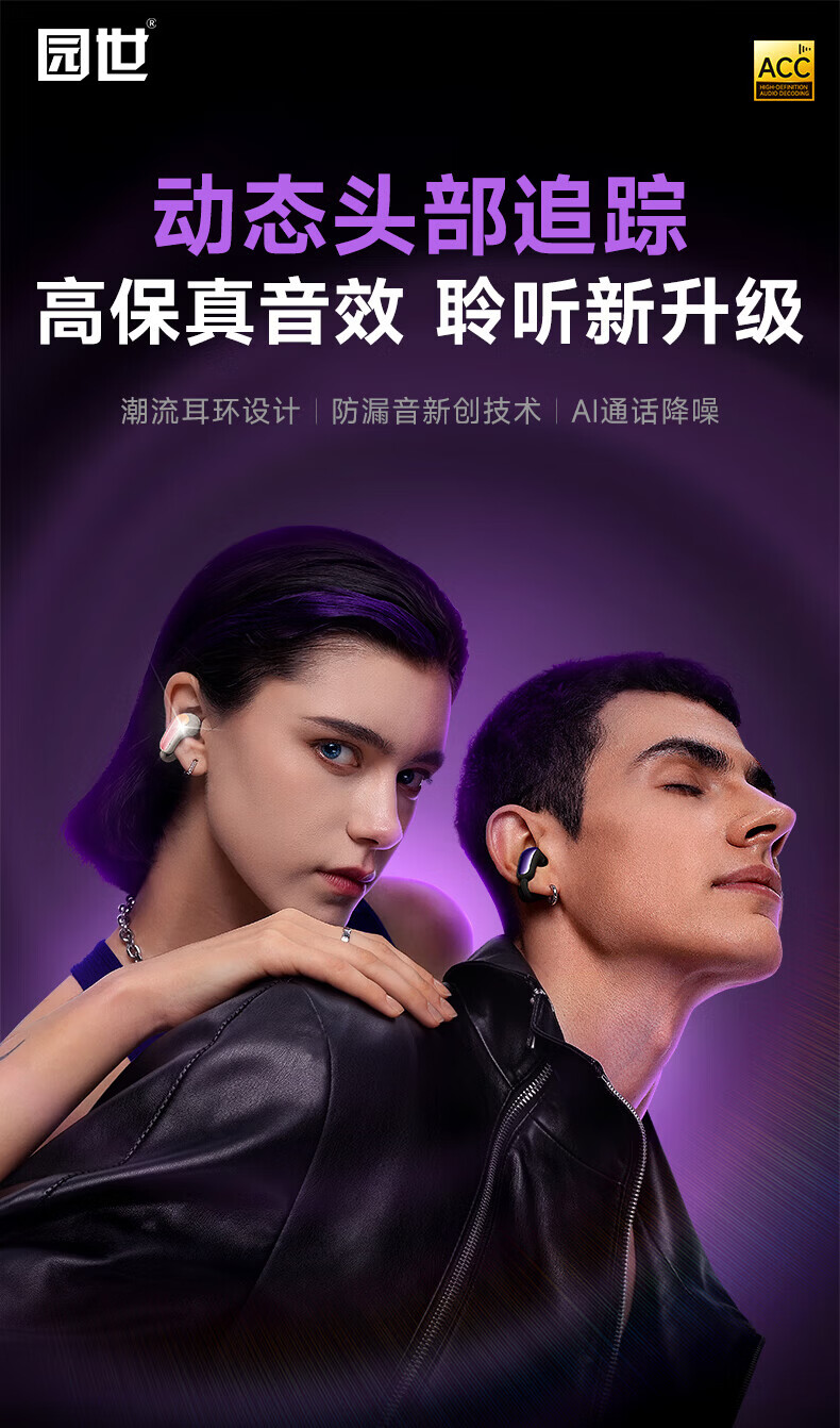 园世W3 耳夹式蓝牙耳机 开放式不入耳无线耳机 跑步运动游戏通话降噪 动态头部追踪丨智能APP丨W3 Pro