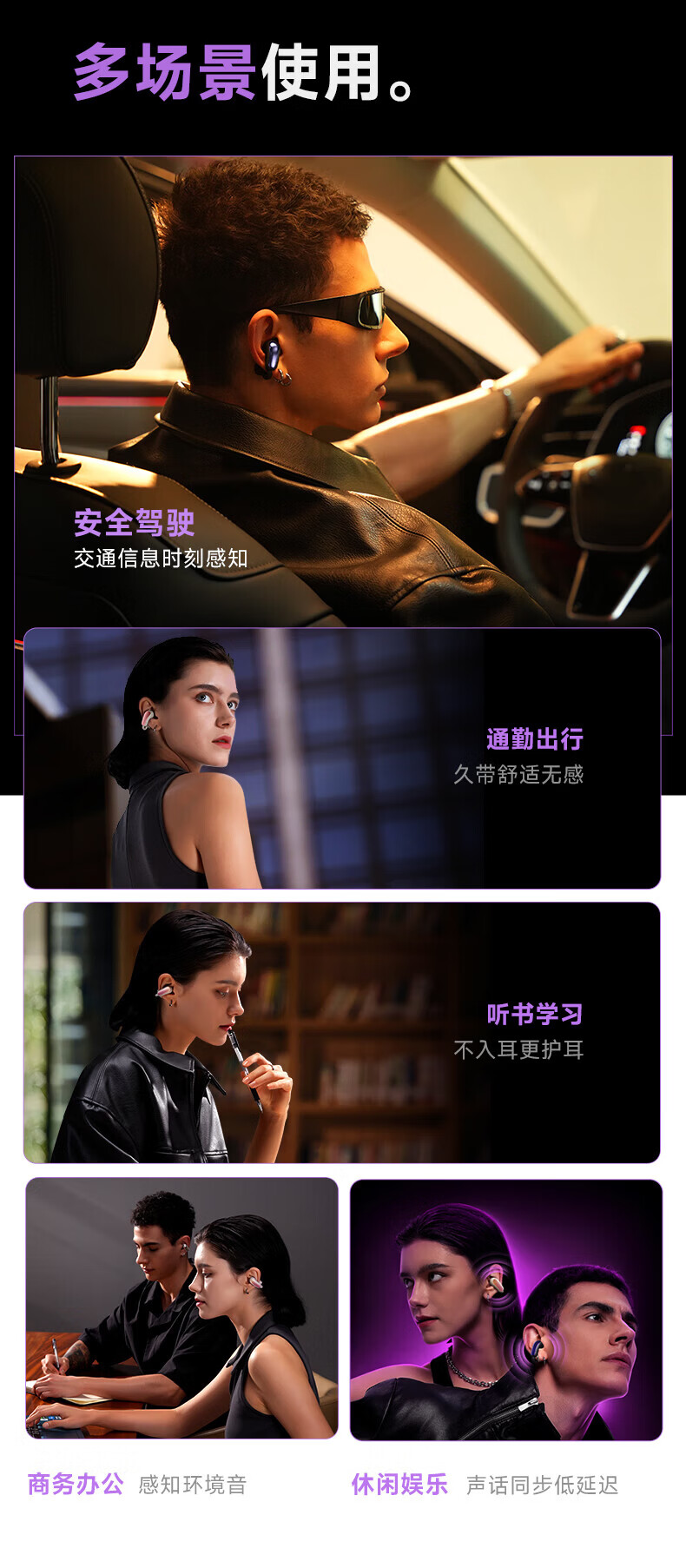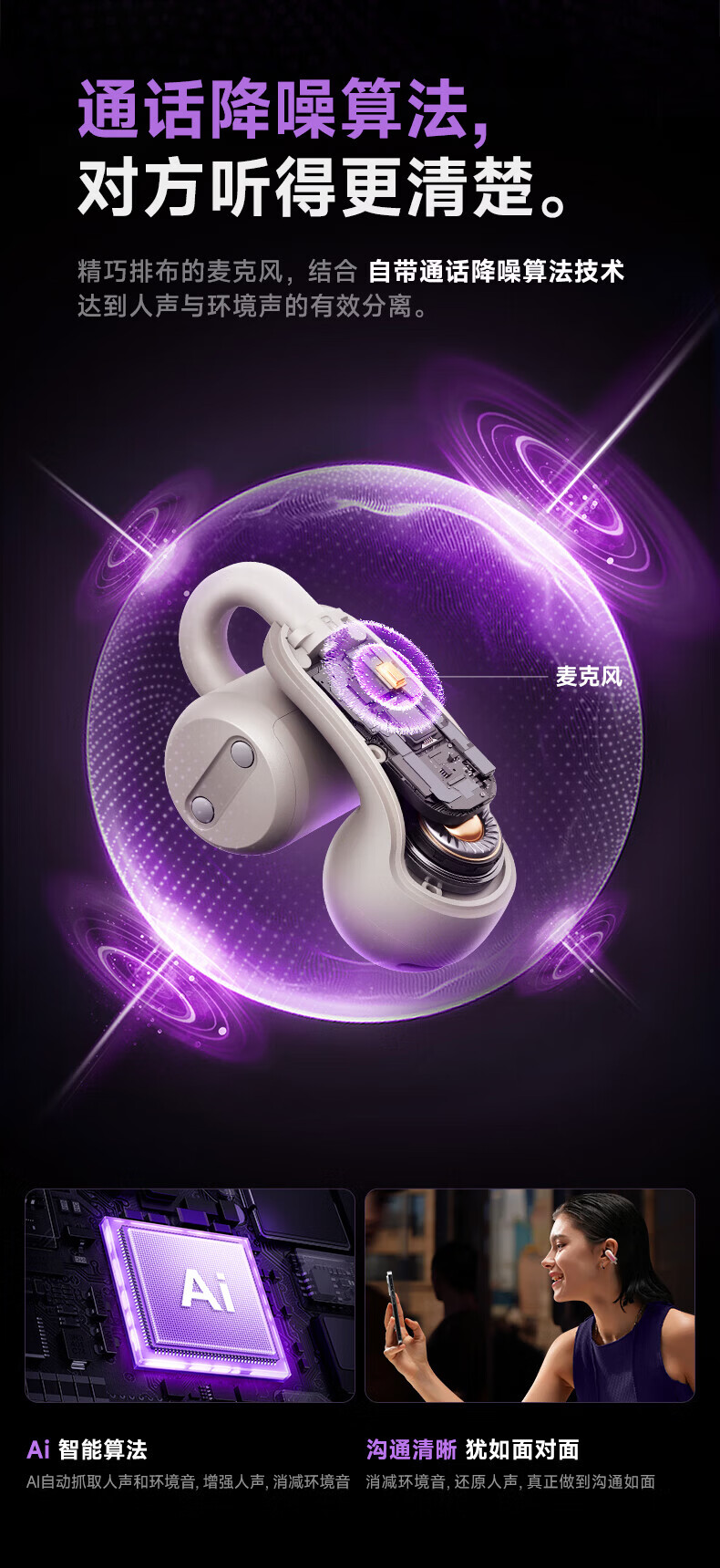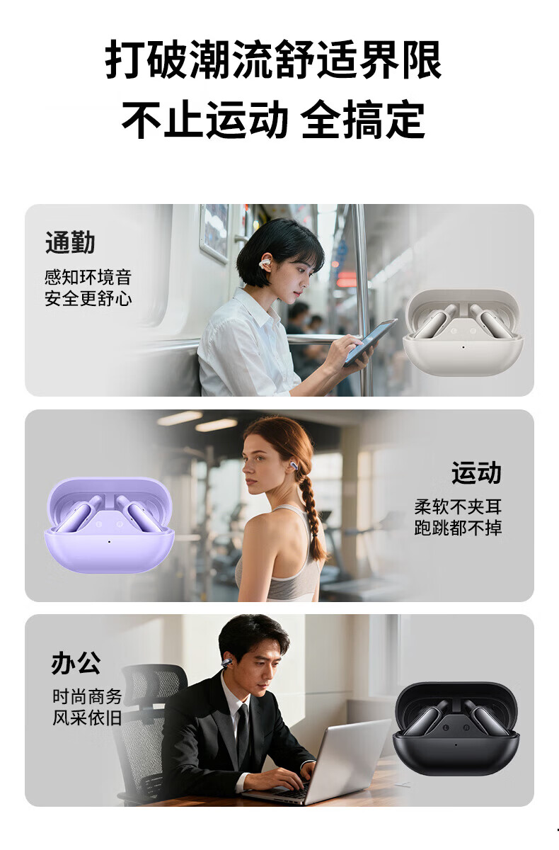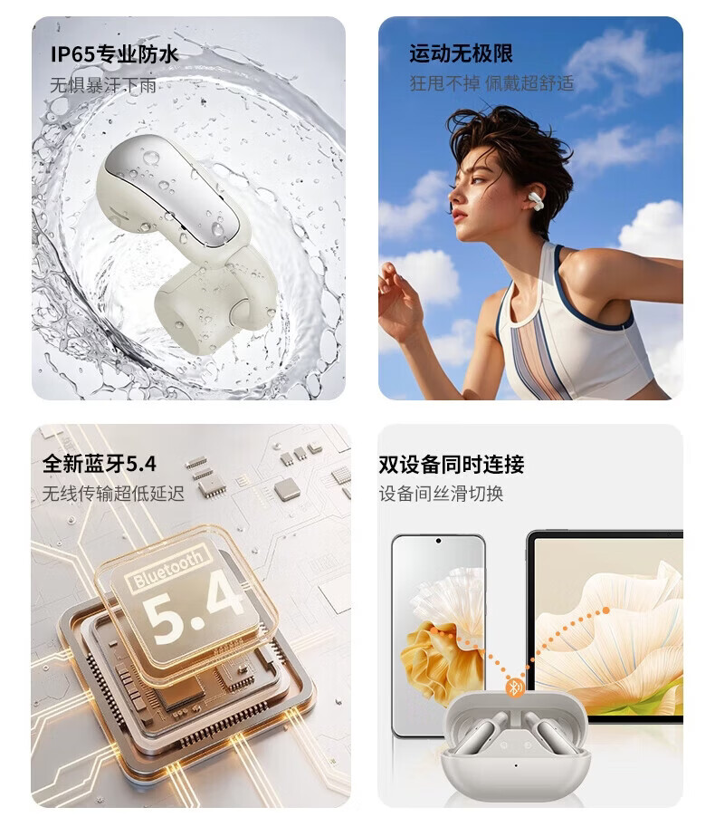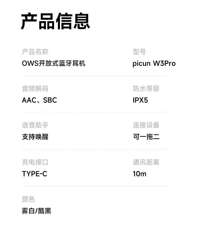 园世W3 耳夹式蓝牙耳机 开放式不入耳无线耳机 跑步运动游戏通话降噪 动态头部追踪丨智能APP丨W3 Pro