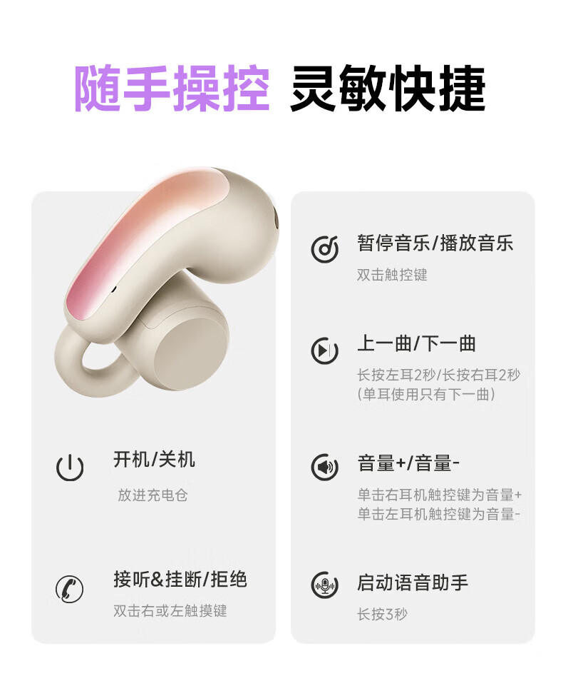 金声动音耳机蓝牙耳机AI语音耳夹式饰品手机电脑通用真蓝牙迷你运动无线款真无线蓝牙耳机迷你运动适用 暮云粉 不带饰品